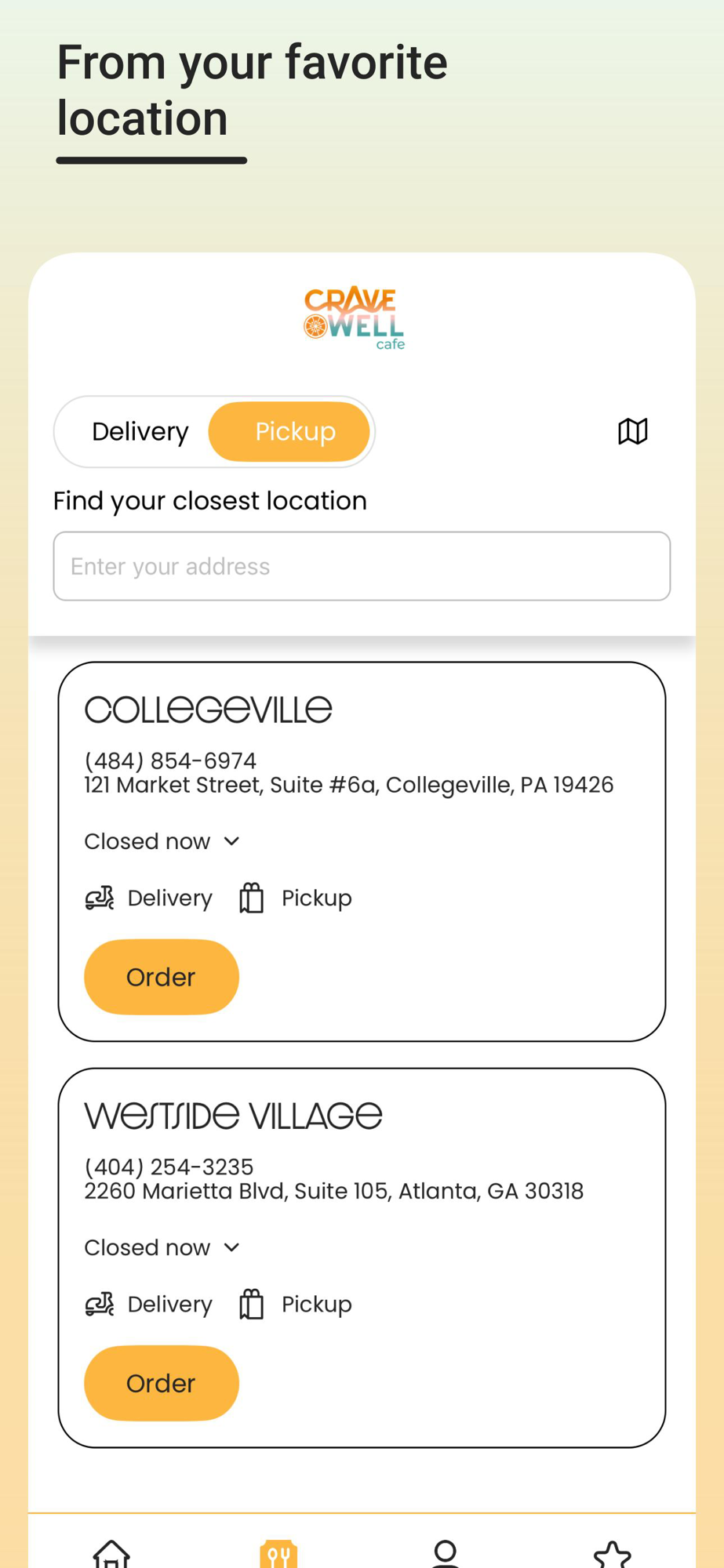 Use the CraveWell Cafe app to find your nearest location, view our menu, and place an order. Save time by ordering ahead. Earn loyalty points and track your rewards status from within the app. Flavorful, healthy and affordable smoothies, fresh pressed juices, hearty salads, toasts, sandwiches, wraps, and kid’s meals, all designed to fit busy lifestyles and with something delicious for the whole family.