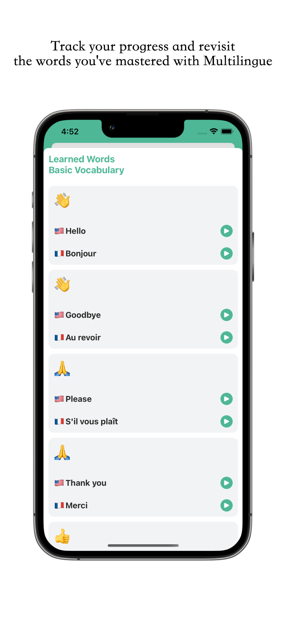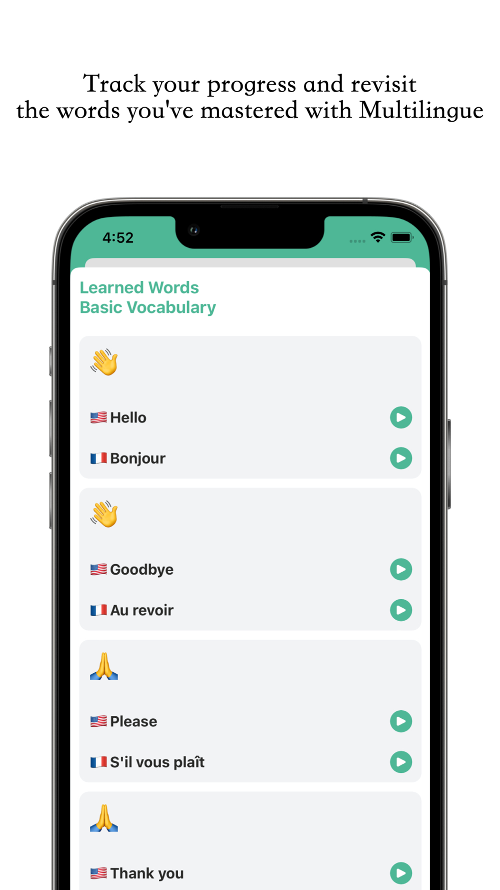 Egal, ob Sie Anfänger sind oder Ihre Sprachkenntnisse verfeinern möchten, Multilingue ist Ihr idealer Begleiter, um die Vielfalt der Weltsprachen zu erkunden. Tauchen Sie ein in ein aufregendes Bildungsabenteuer und sprechen Sie selbstbewusst in jeder Sprache!
