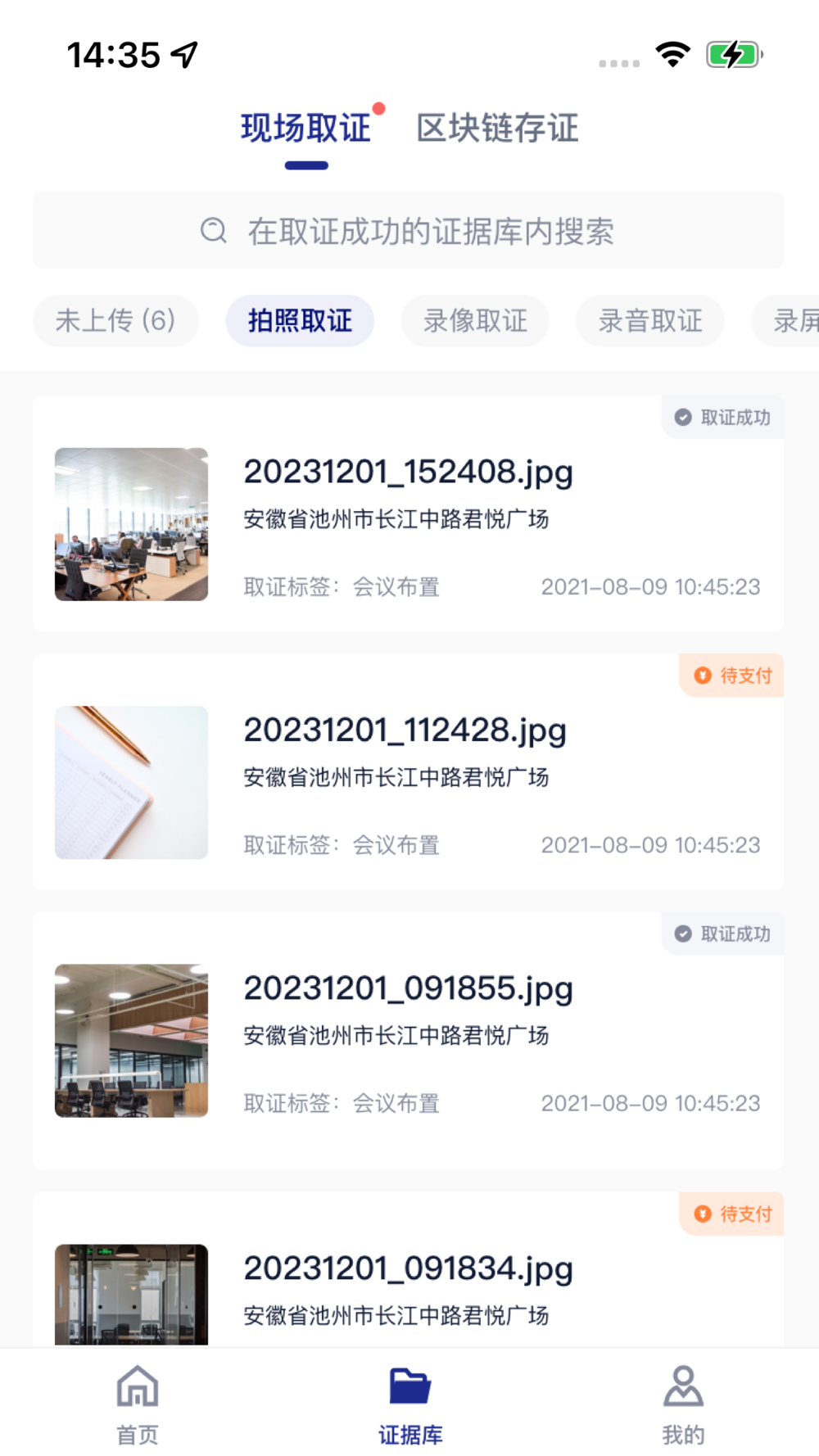 一款针对线下取证场景的专业取证工具,包含拍照取证、录像取证、录音取证以及录屏取证四大部分功能,还有文件存证、哈希存证功能。全场景覆盖,随时随地留存证据,侵权取证无一遗漏;司法公证+区块链技术双重背书,证据实时上链防篡改。适用多场景取证,满足不同取证需求,提供专业化服务为您的维权道路保驾护航。