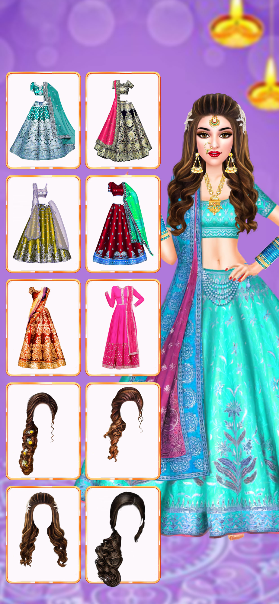 Indian wedding makeup beauty makeover tasks ranging from applying makeup base to eyelash extensions, eyeliner with mascara, bracelets, coating cheeks in blush, and earrings with fashion makeup games and dress up games for girls. This wedding stylist game has Indian wedding fun of dress up and makeup games for girls. You can enjoy Indian wedding decorating and girls wedding dresses as a super stylish salon beauty with full dress up and makeup ready to look like a queen bride.