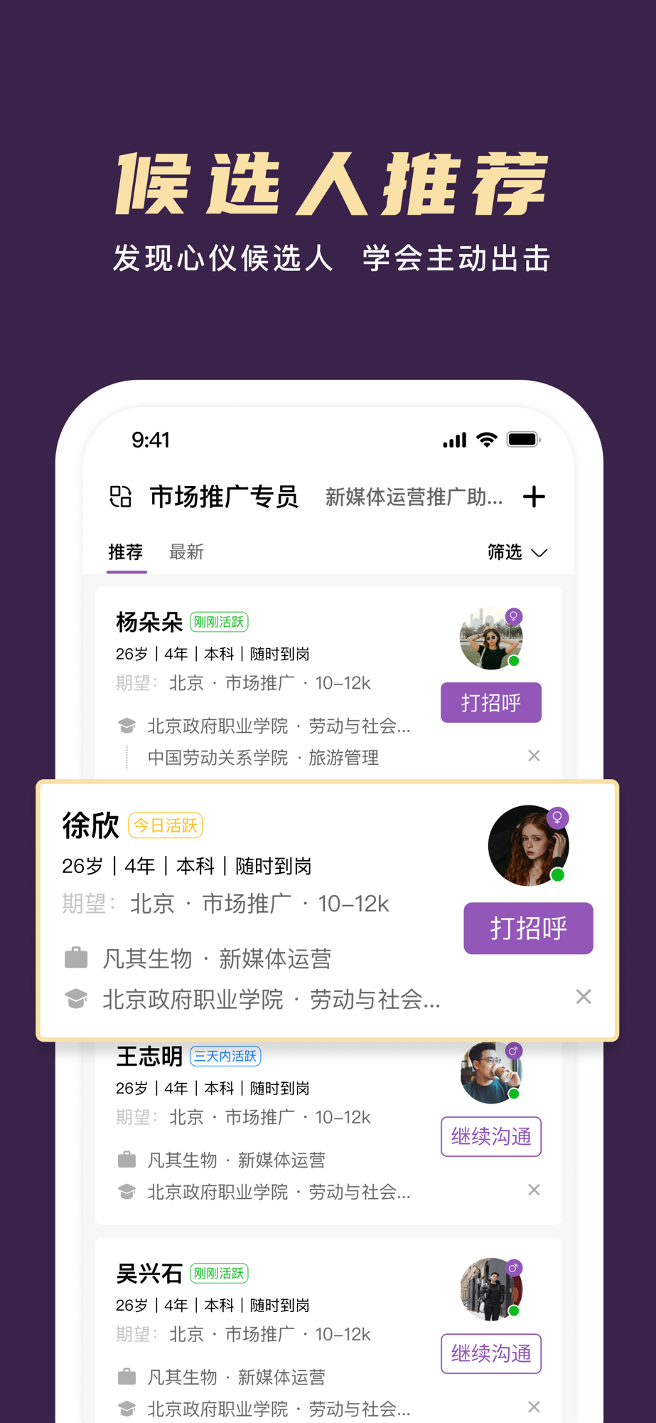 对于求职者而言,梧桐高聘提供了一个广阔的职业发展平台。您可以创建个人简历,展示您的技能和经验,并浏览数以万计的工作机会。智能匹配算法将根据您的背景和偏好为您推荐最适合您的职位。您可以通过应用内的聊天功能与招聘者沟通,预约面试,并轻松管理您的面试进程。一旦获得心仪的工作机会,您还可以收到offer并进行线上签约。