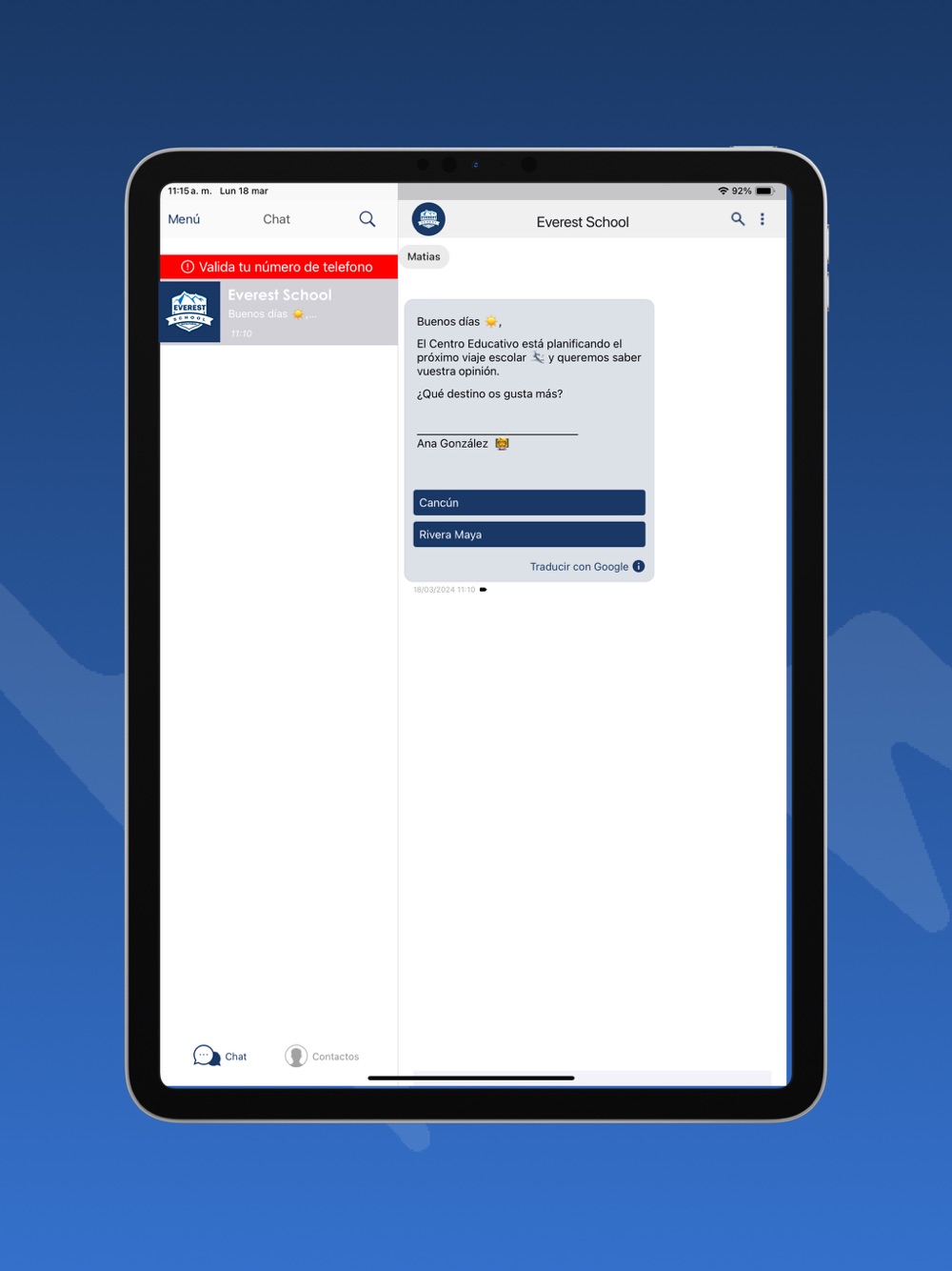 Te damos la bienvenida a Everest School Group, la plataforma diseñada para revolucionar la comunicación y colaboración entre las familias y los distintos niveles educativos del grupo escolar Everest. Nuestra aplicación es el puente que une a "Everest School", "Everest Junior High School", y "Felices hacia el Futuro", creando un entorno digital cohesivo para toda nuestra comunidad educativa.