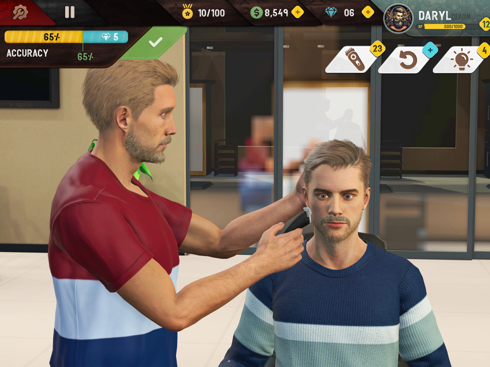 Be the best haircut salon barber of the town and make some stylish haircut or set beard with best beard trends style in this barber shop software for kids shave. You have to show your hair style or hair cut as well as beard trimming skills and make your customer happy by making iconic hairstyle or spice up their mustache. We will give you multiple hairdresser and beard styles albums as well. Take your scissor and trimmer to transform beard and hair into the most fashionable beard makeover and stylish look of men. You will be playing this amazing beauty salon and hair barber salon cutting games 2024. Take clients into your barber shop hair salon games and create stylish hair cutting look. Cut and style hairs, using your creativity in barber shop hair salon & hair cutting games 2024. We will give you multiple barber shop hair salon tasks to accomplish in hair cutting games. Select the hairstyle and make it to earn money in barber shop games for boys. Amazing hair cut game atmosphere; where you have to give beard trends or make some iconic hairstyle in this barber shop salon haircut simulator.