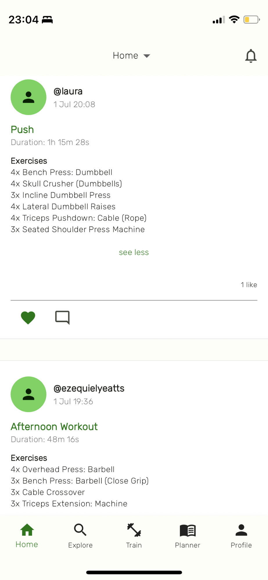 - Share, like and comment workouts