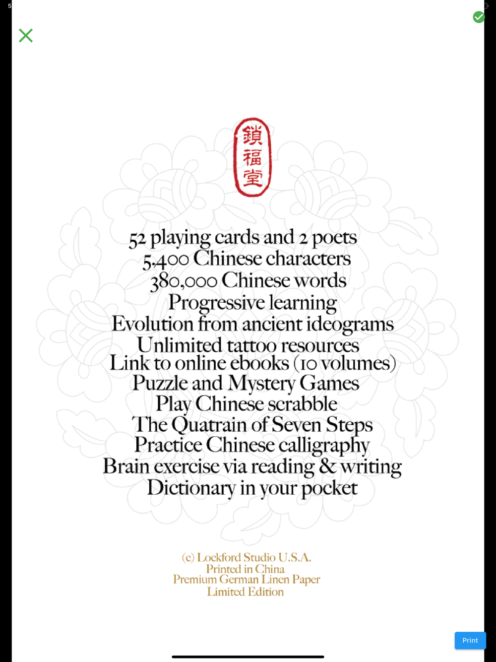 8. While viewing a card, tap the 'PRINT' button to print via an AirPrint-compatible or Brother label printer.