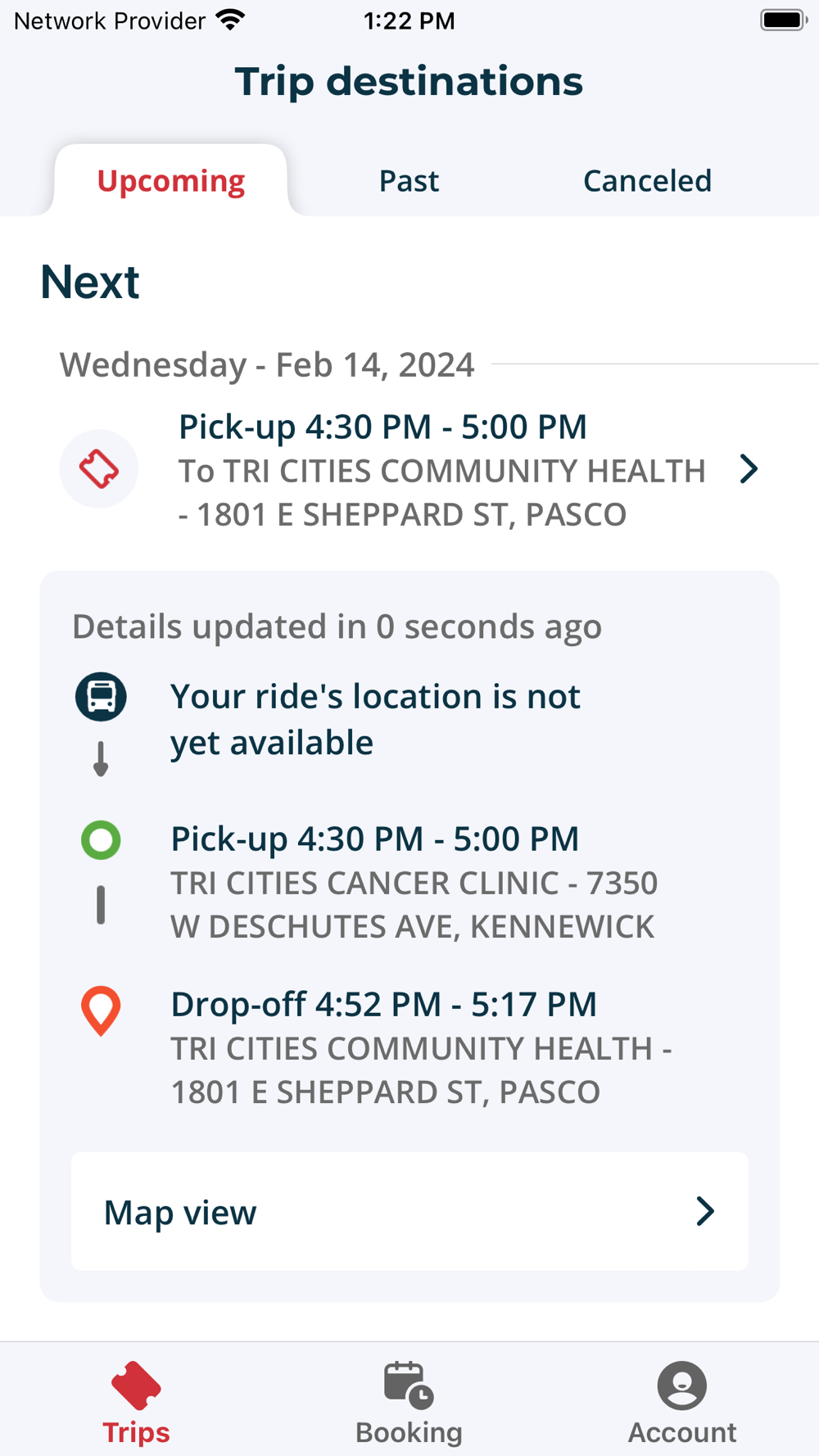 Bug fixes and Improvements:- Resolved issue where, when a client has a self-service account with address allowed set to no, the client was able to book a trip using POI addresses from their client profile and recently used addresses from recent trips they have taken.- Resolved issue where rating a trip was not returning the user to the Past Trips screen.- Resolved issue where screen titles were not always displayed at the top of the screen.- Resolved issue where the log out button returned the user to the home page instead of logging out as expected.- Resolved issue where deep linking failed if app was not already installed.