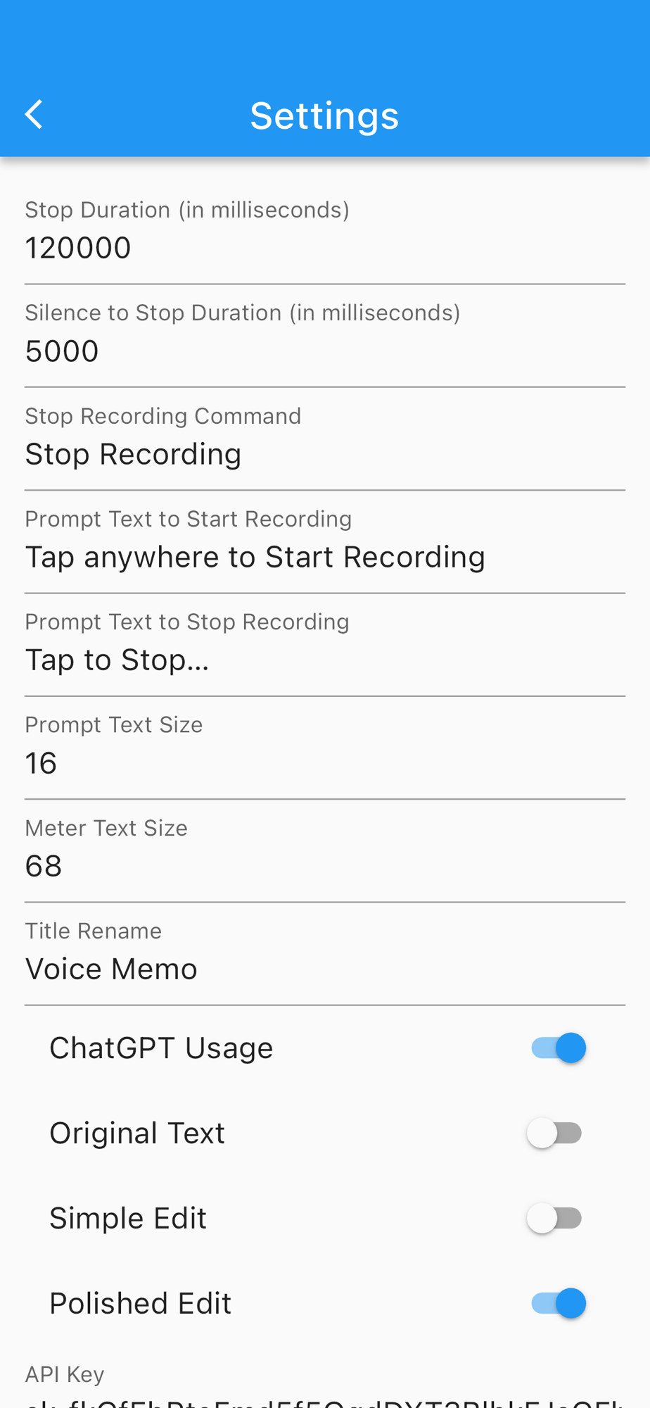 Special Note on Your Privacy: We do not collect your personal data. All your recorded voices and transcribed texts are stored in your device's internal Files folder. If you enter your API key for your OpenAI account, it is securely saved within the app, and we do not have access to this information. You have the option to share your recorded voice or transcribed texts via Email or Text messages, but please be assured, we do not have access to any information shared in this manner.