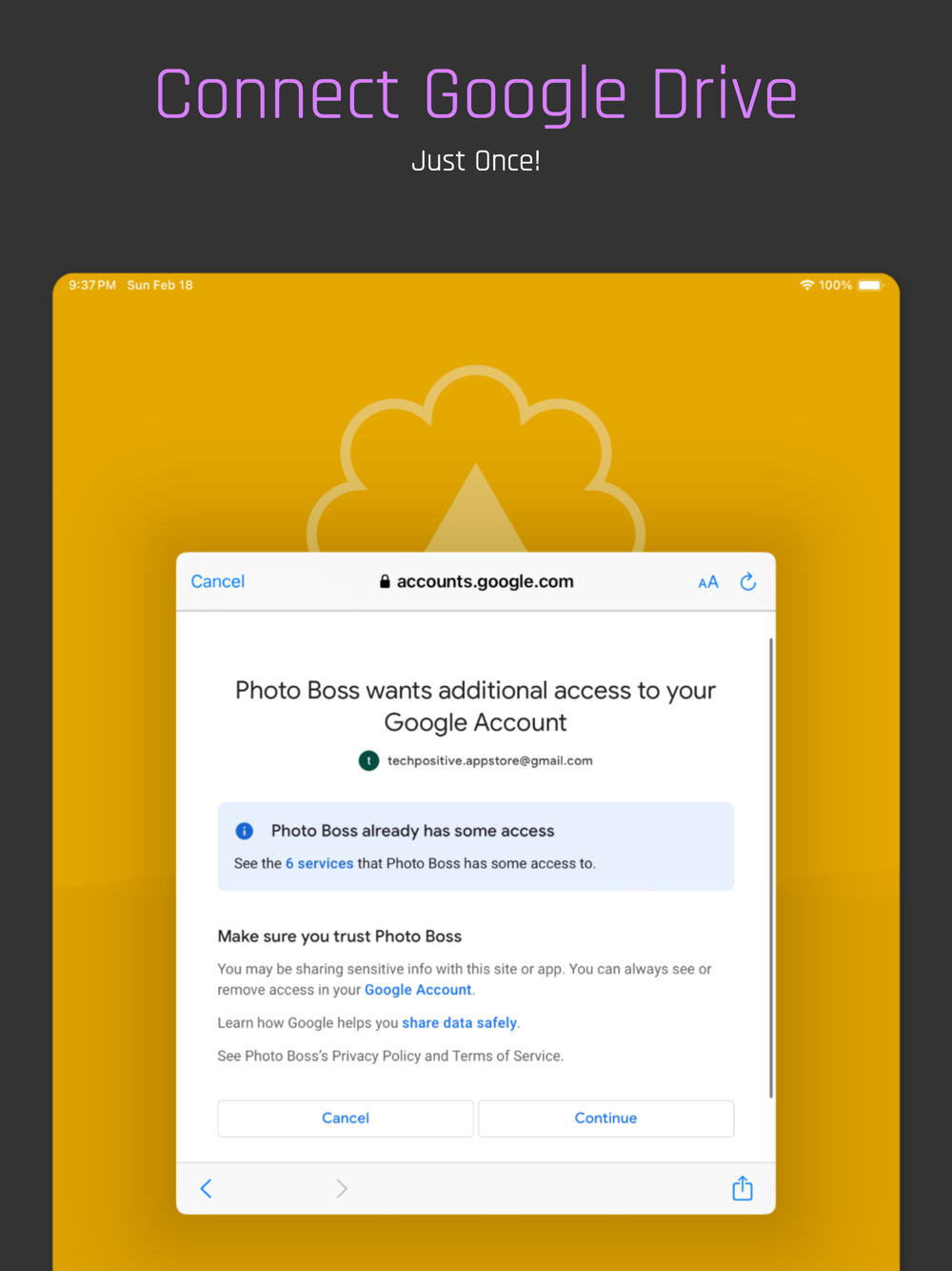 Photo Boss is the only app which takes the pain away of opening the Google Drive app every-time you need a photo on your computer.