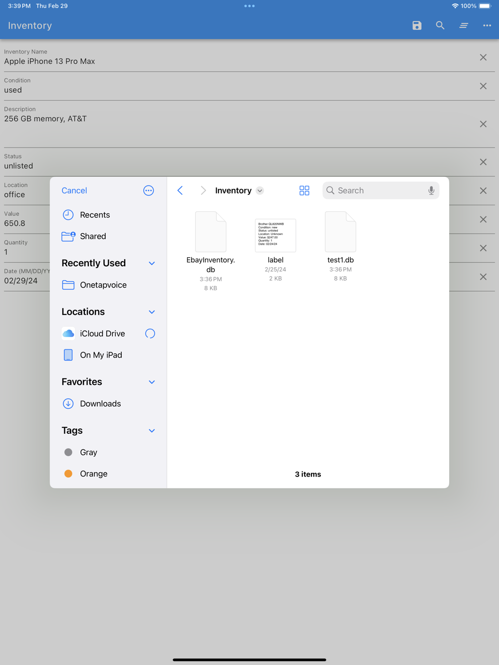 Printing capabilities are expanded to include simple item labels, directly supporting a wide range of Brother label printers such as the QL820NWB, QL1110NWB, and many more, alongside compatibility with any local AirPrint-enabled printer.