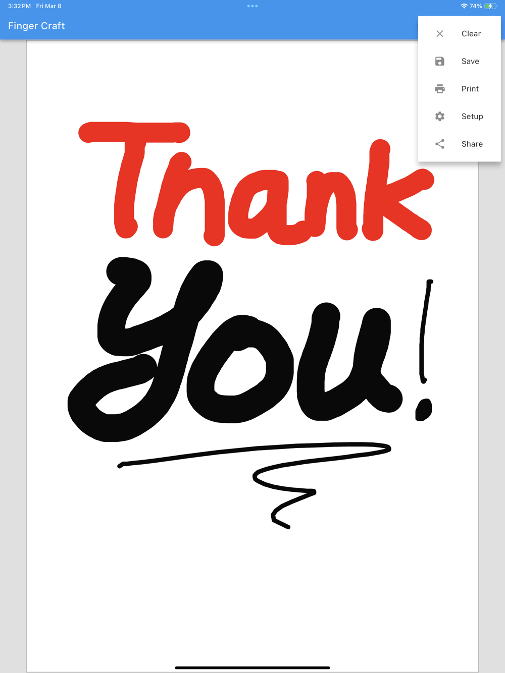 6. To clear the canvas, tap the "more" icon, then select "clear."