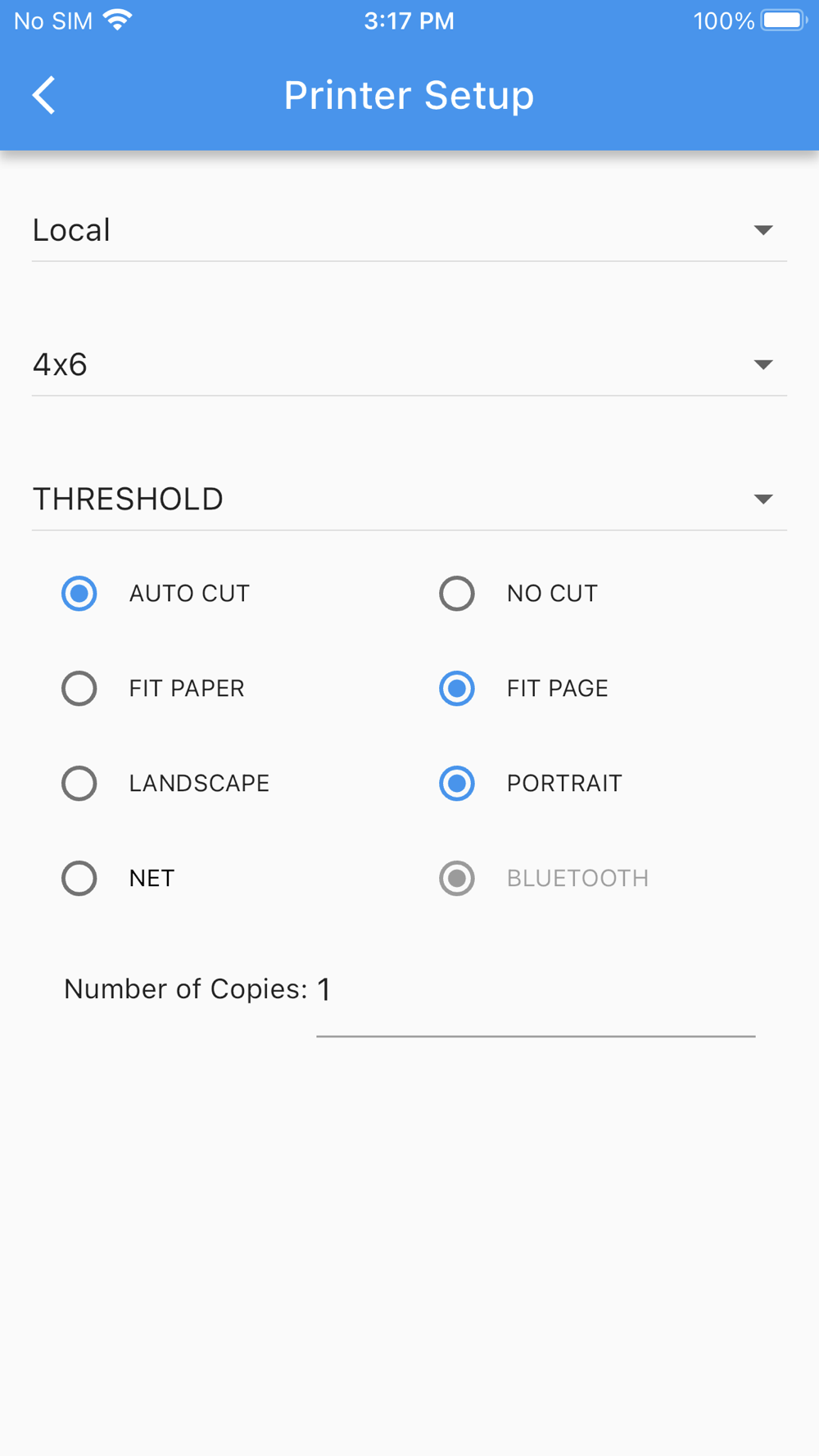 9. To adjust printer settings, choose "more" -> "setup."