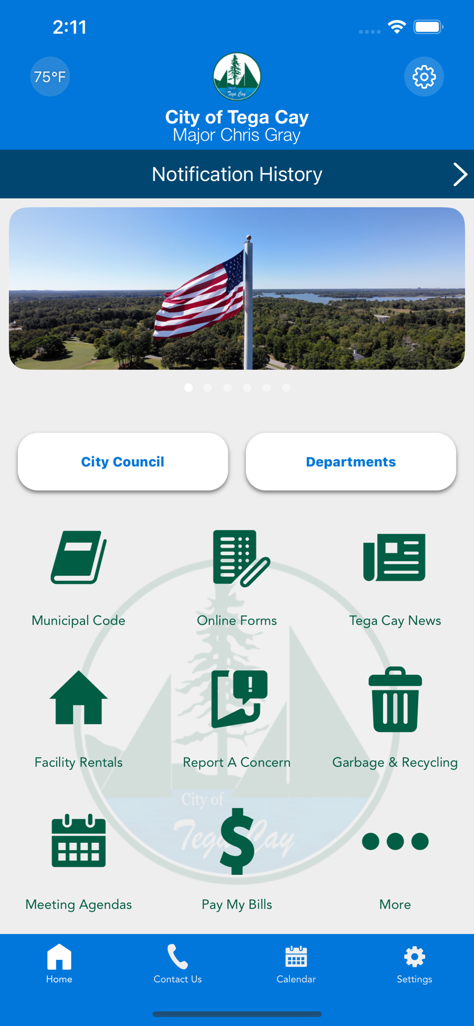 The City of Tega Cay mobile application is an interactive app which will help improve our communication with the City of Tega Cay. The purpose of this app is to improve our ability to communicate with our citizens Information which will include, but not be limited to Push Notifications, bill payments and more. By empowering people through technology, the City of Tega Cay will be able to better serve our communities.