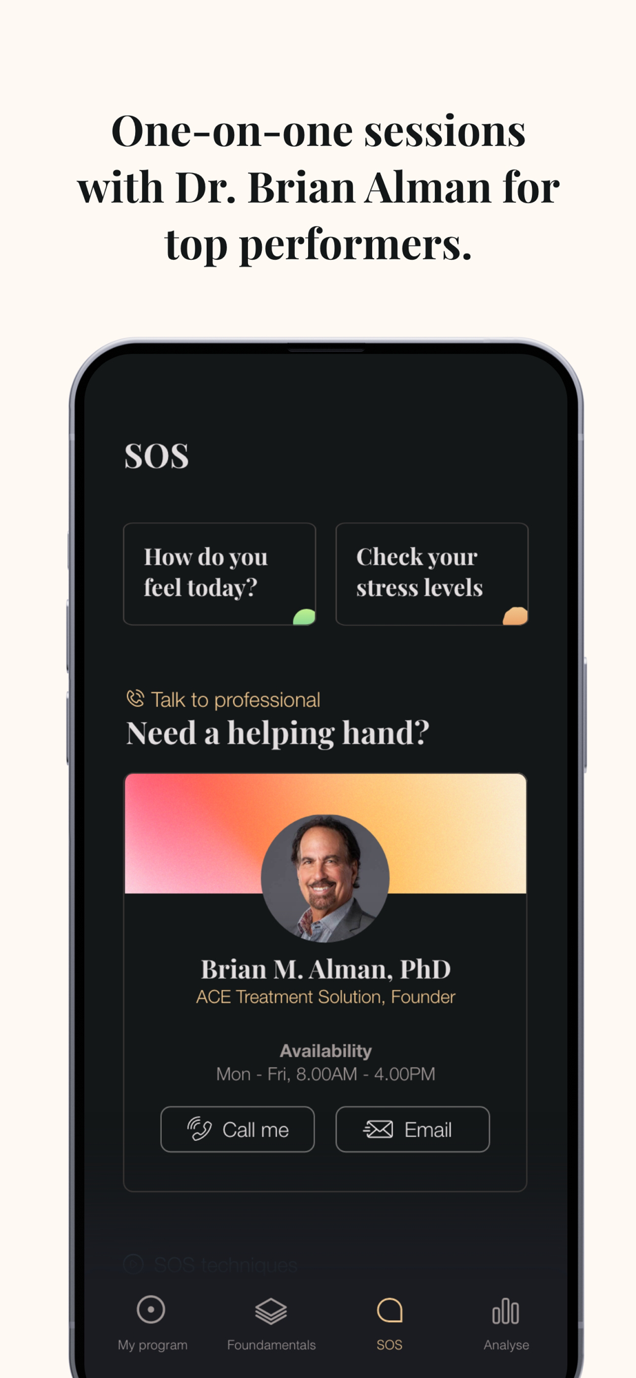 • SOS Techniques: Get support when needed to help you feel better and track your emotions and stress levels.