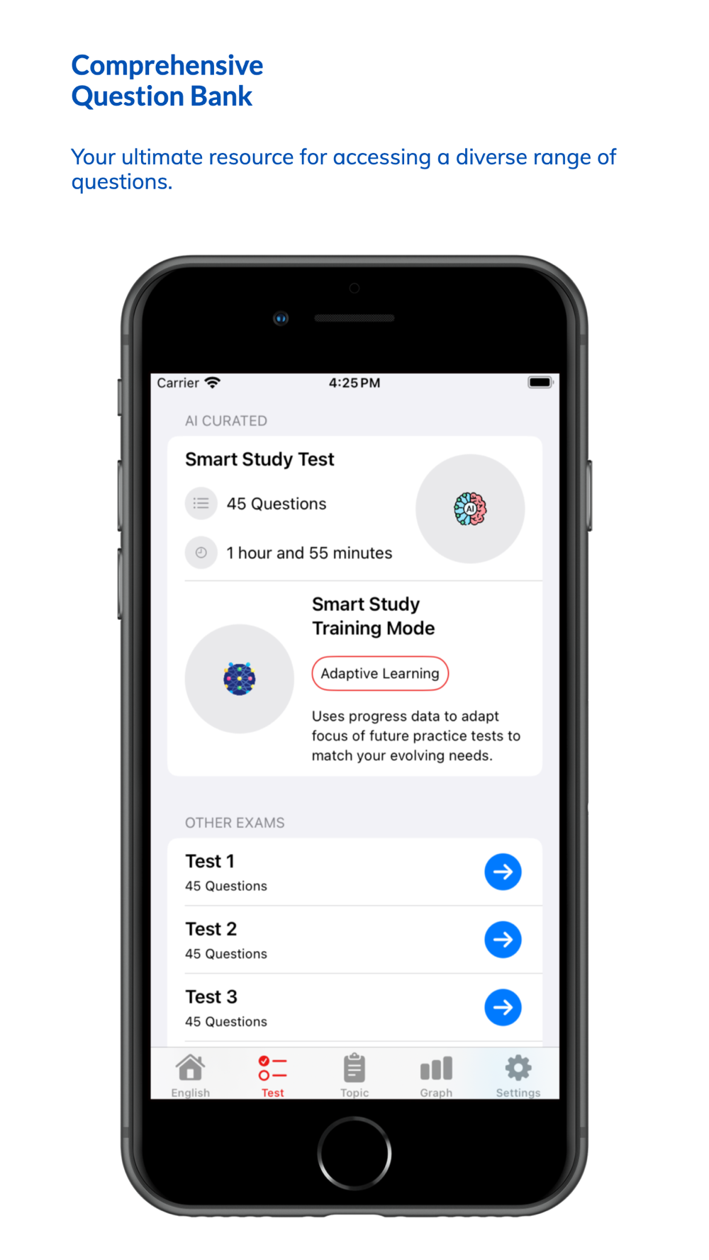 - AI-Driven Smart Learning: Benefit from our intelligent AI system, which adapts to your progress and offers personalized practice sessions to optimize your preparation.