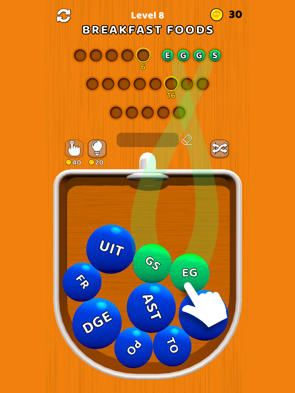 - Tap on the syllable balls and complete the words correctly