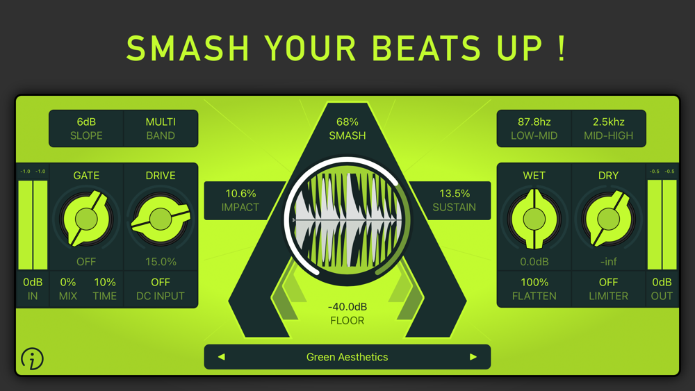 FAC Smash is all about generating explosive energy for your beats and instruments! Squash, squeeze... SMASH your sound, or simply get that magical gentle touch when you seek refinement and finesse.