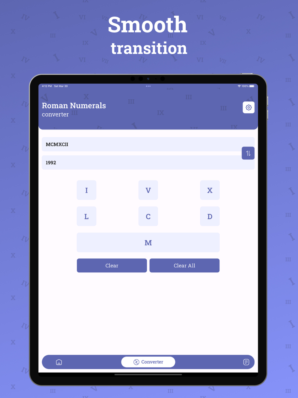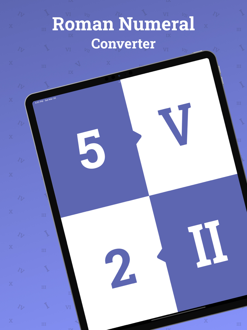 Step into the world of ancient numerals with our Roman Numerals Converter app! Seamlessly switch between Roman numerals and decimal numbers with ease and precision, all at your fingertips and free of charge.