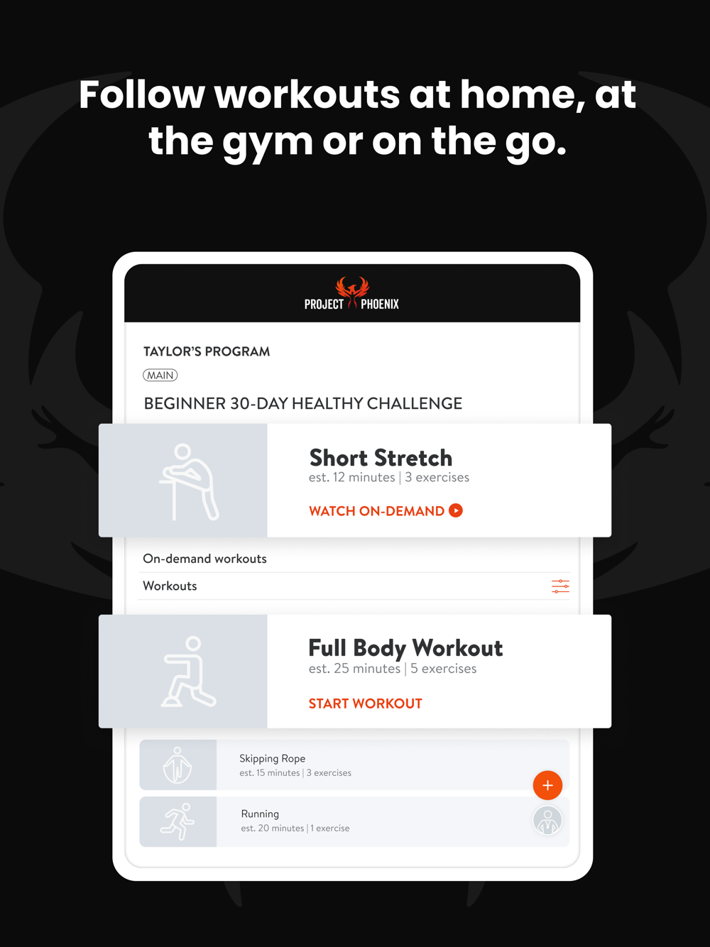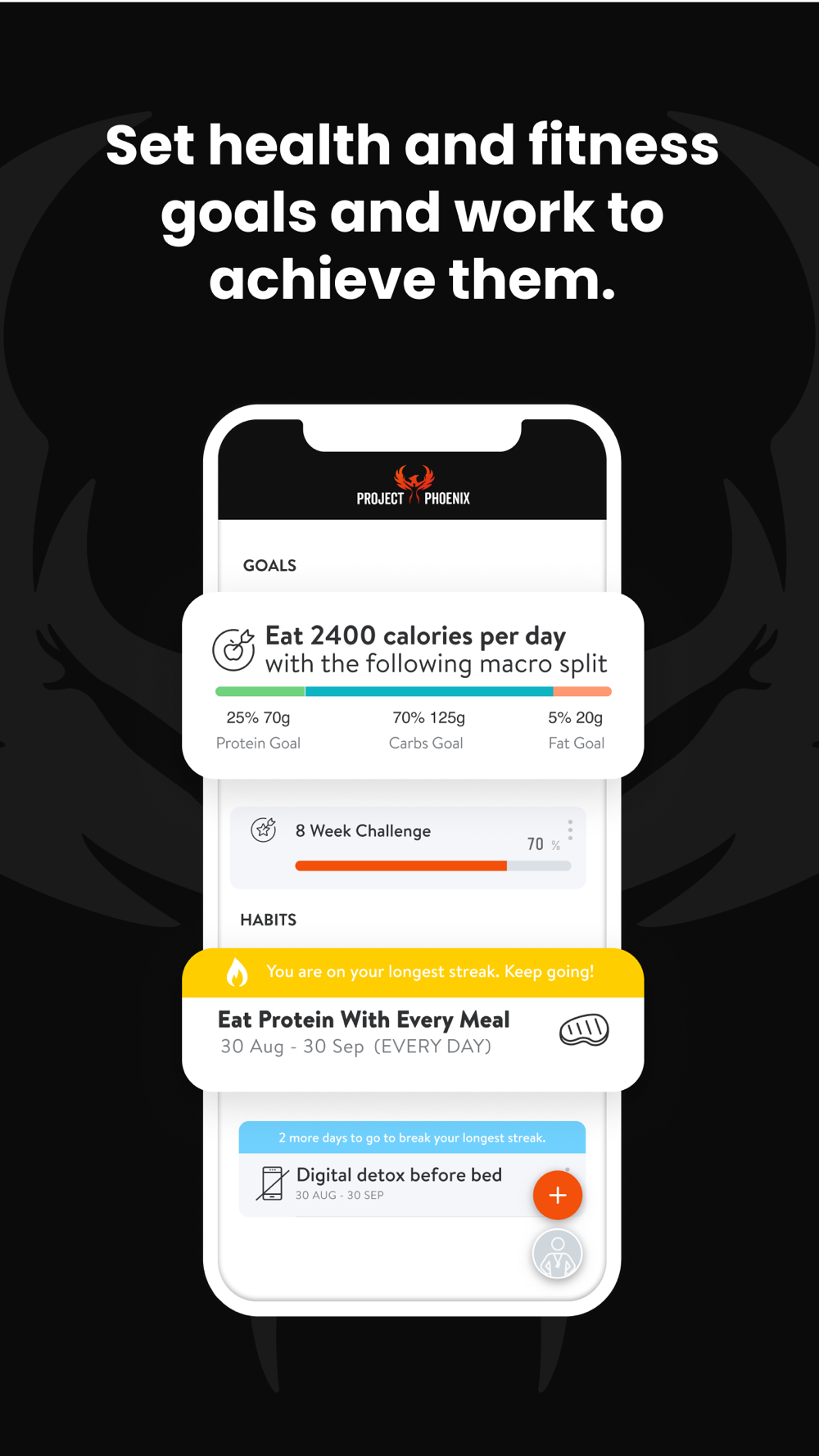 With the Project Phoenix App, you will have access to workout programs designed specifically to help you reach your fitness and health goals! You can follow & track your workouts, your nutrition, your lifestyle habits, measurements and results–all with the help of your coach.