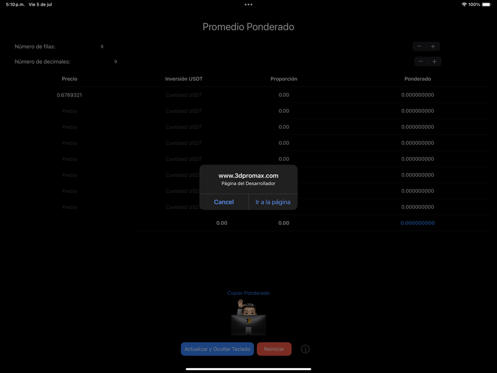 Whether you are an experienced trader or someone just starting out in the world of cryptocurrencies, “Ponderado” suits your needs. The ability to handle multiple rows of data and adjust decimals gives you the versatility you look for in a financial tool.