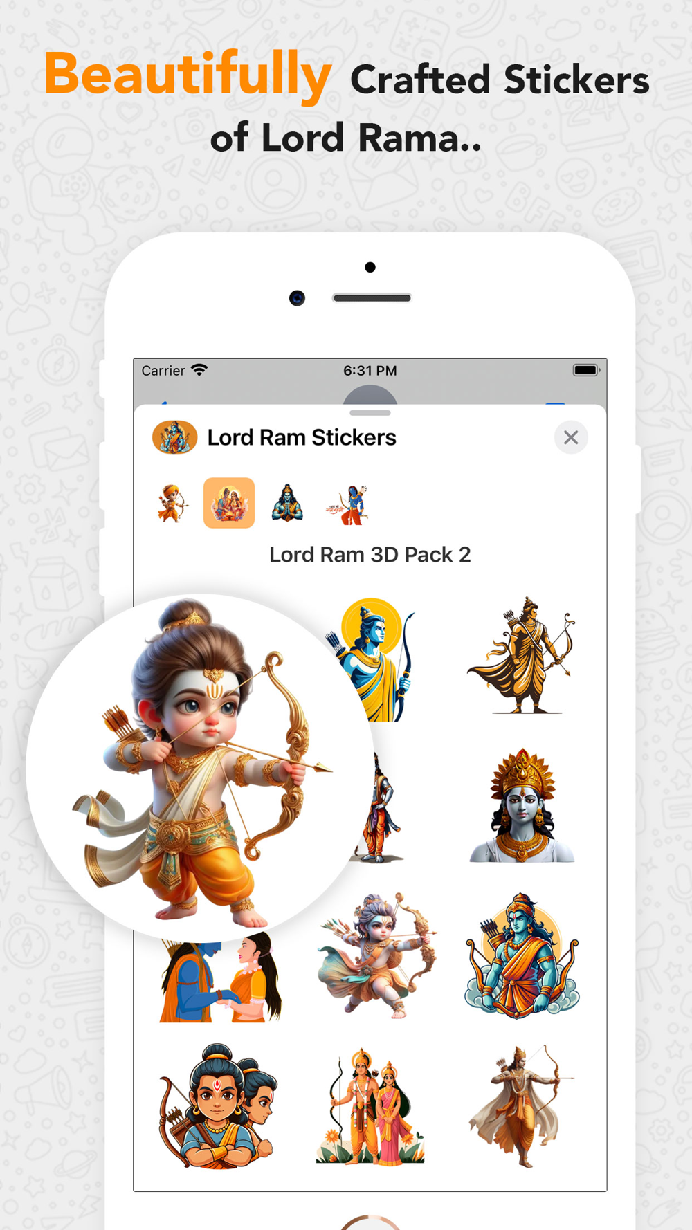 Experience the divine presence of Lord Ram like never before with our extraordinary Lord Ram HD Stickers app for iMessage! Immerse yourself in the sacred aura of Lord Ram as you explore our exclusive collection of HD stickers, bringing the divine blessings of Ram into your conversations.