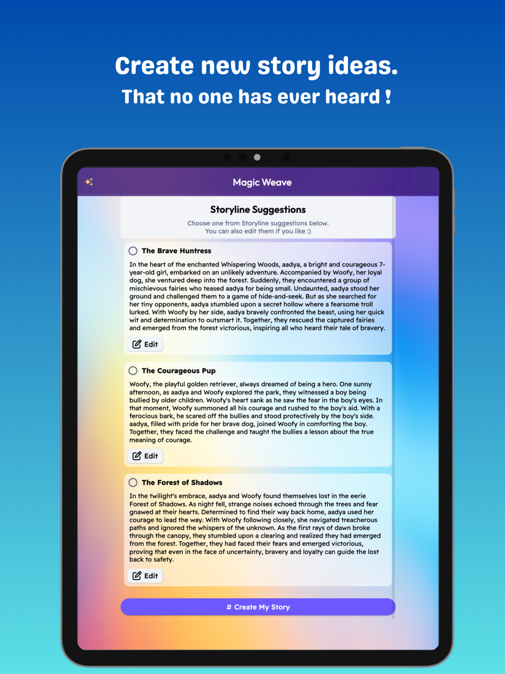 Magic Weave is more than just a storytelling app—it’s a journey into your child’s imagination.