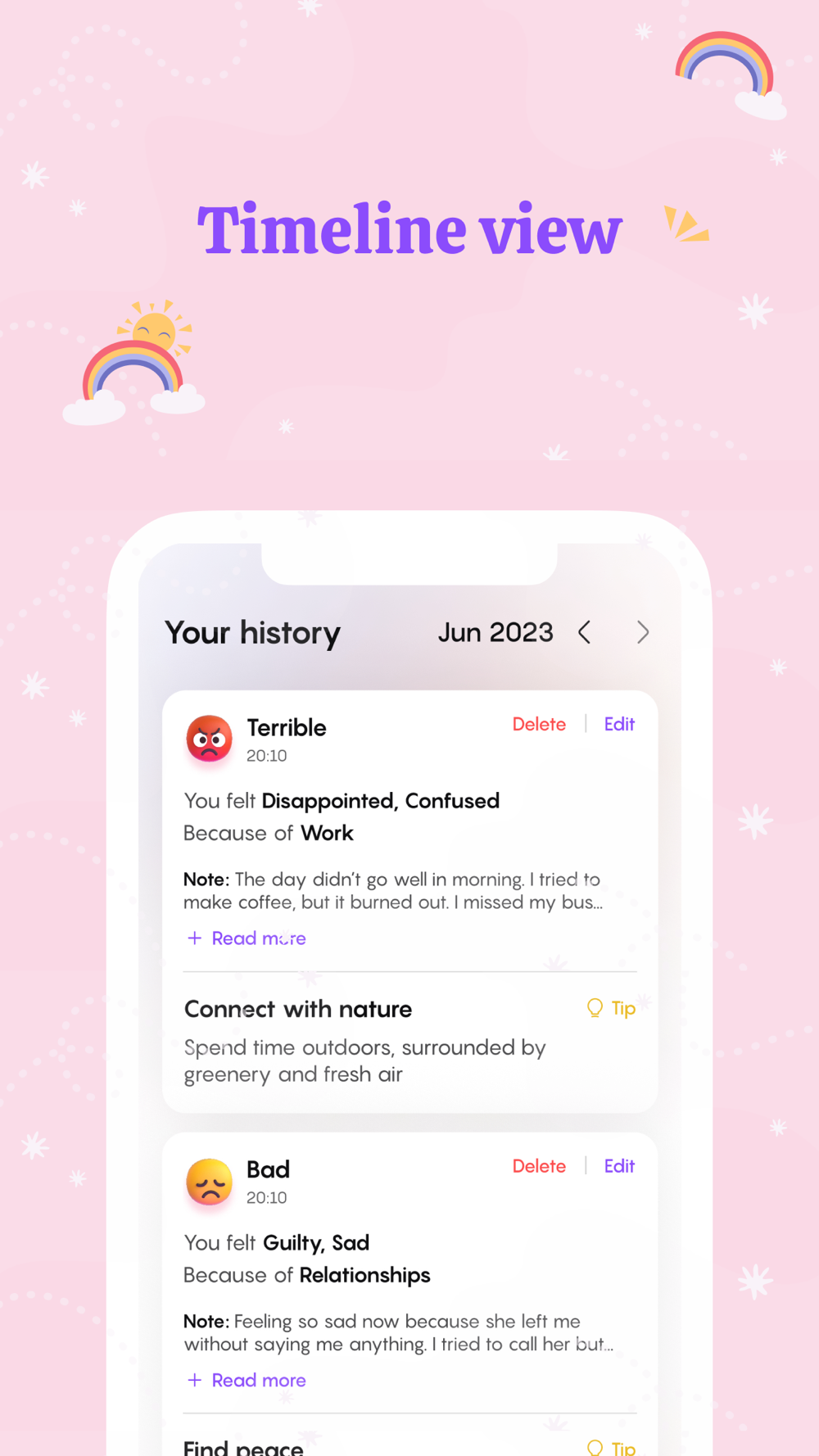 - Click on any mood Emoji to instantly view your detailed daily record.