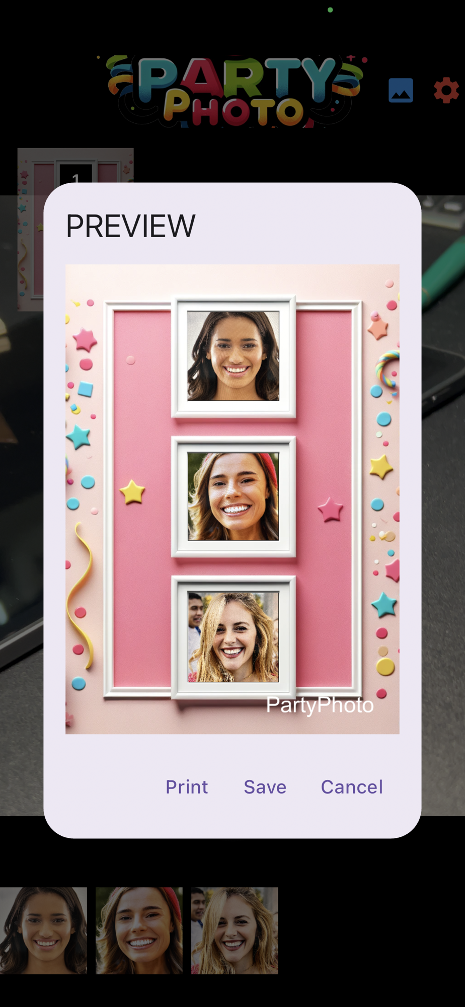 4. When all photos are taken, the app will process your photo strip. In less than a few seconds, you will see a preview screen with the image of your photo strip.