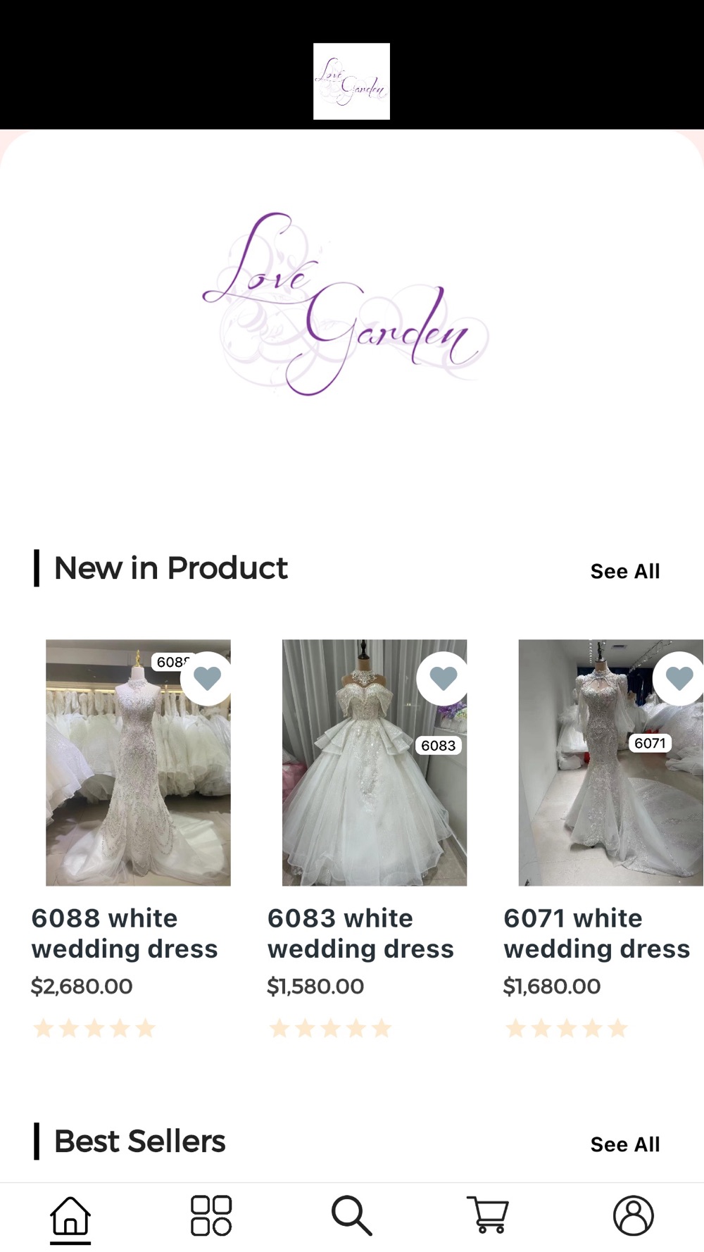 Love Garden 是個賣婚紗及晚宴服裝的app,讓顧客能夠預覽及購買我們的產品。