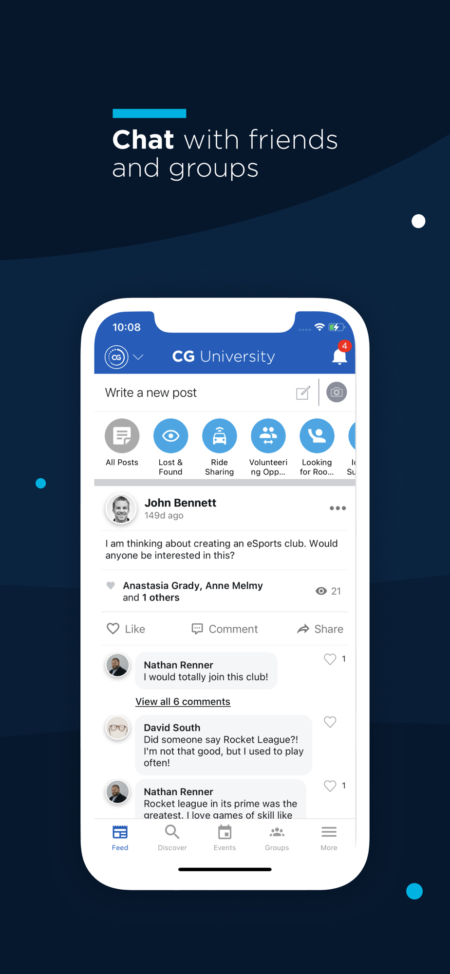 Perch Portal allows students at UNF to join and create their own student organizations on Campus. Perch Portal also allows students to chat with other students, see upcoming events, and register for upcoming club events all through one easy app.