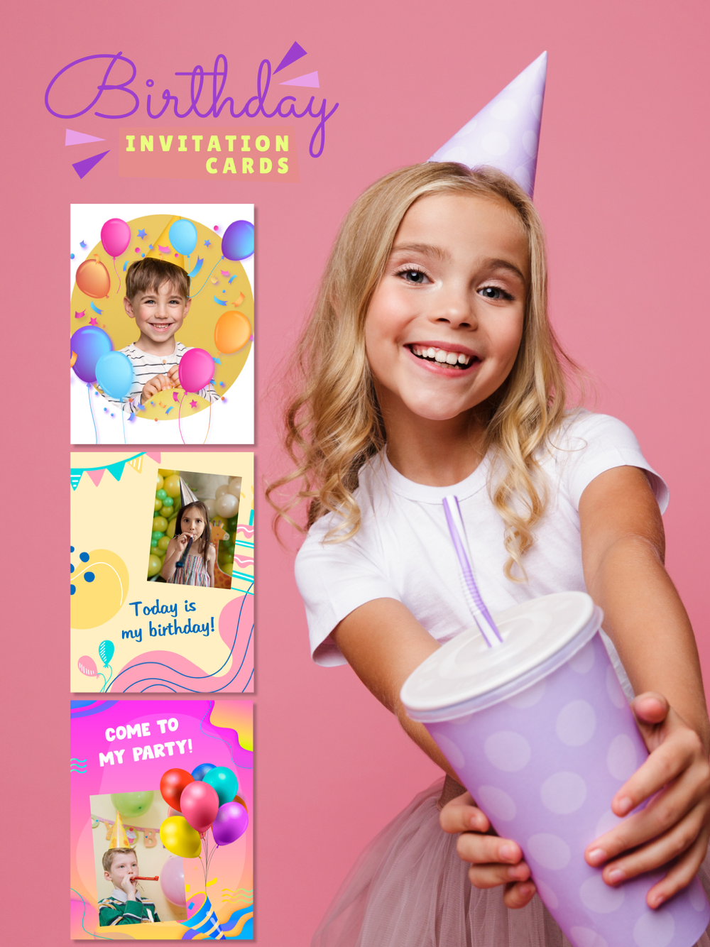 Designing personalized birthday cards and invitations for kids' parties is now super easy and fun with our app!