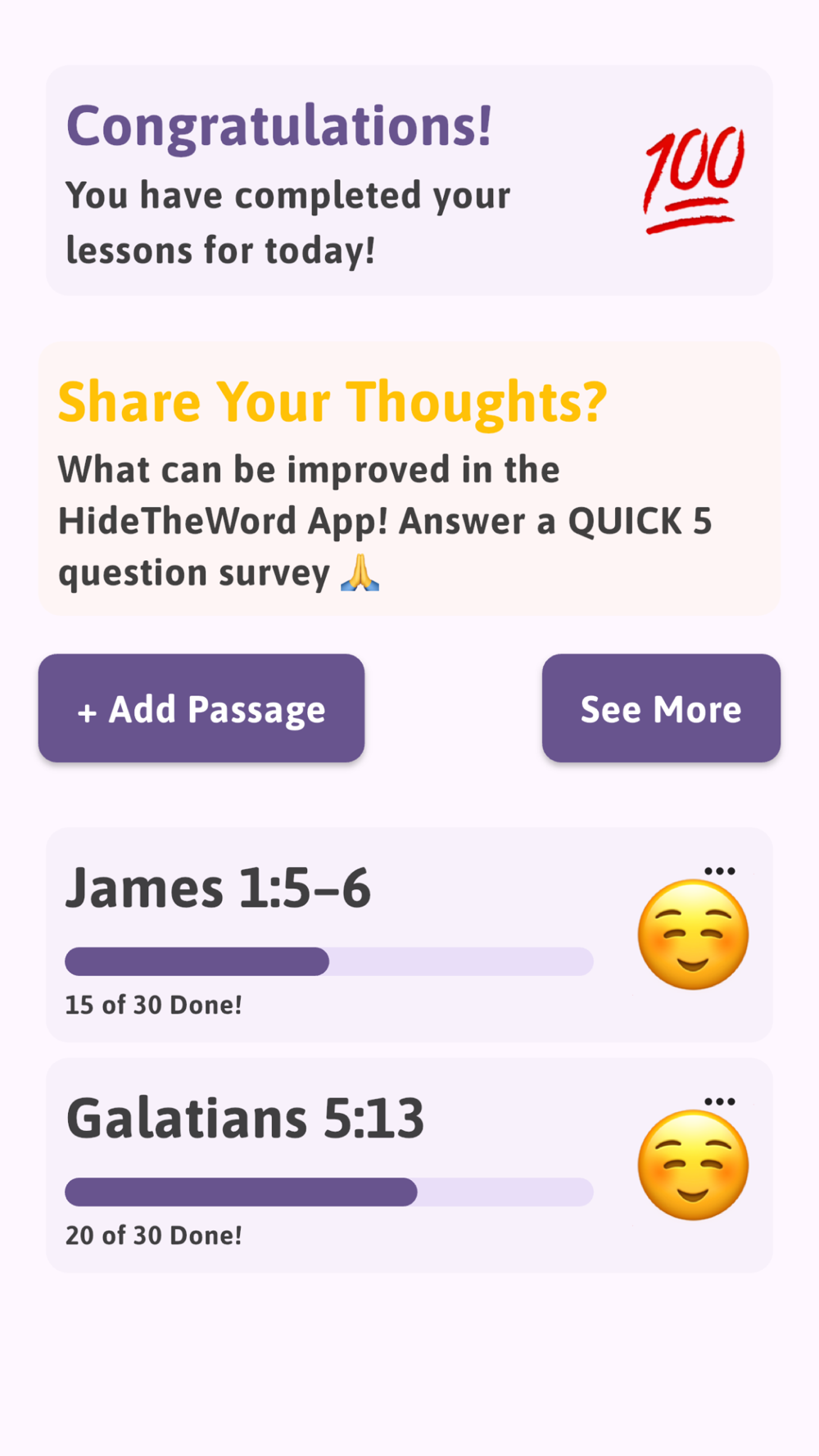 Hide The Word makes Scripture Memory a breeze. Familiarise, Meditate and Memorize scripture through daily micro lessons.