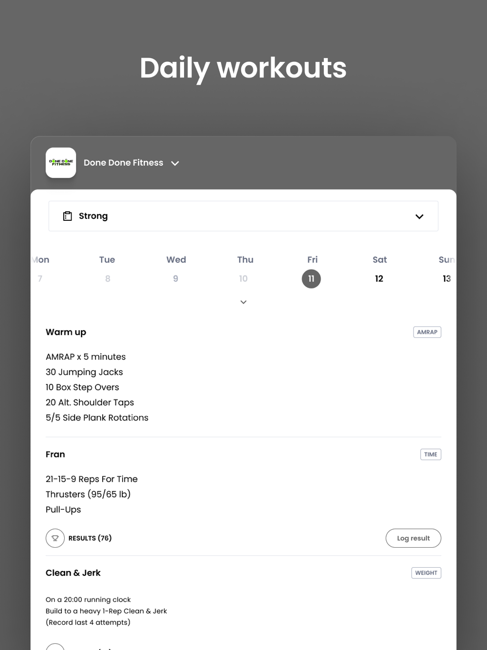 For members of Done Done Fitness to reserve their place in a class, sign up for gym events, and general account management like updating headshots and credit card on file.