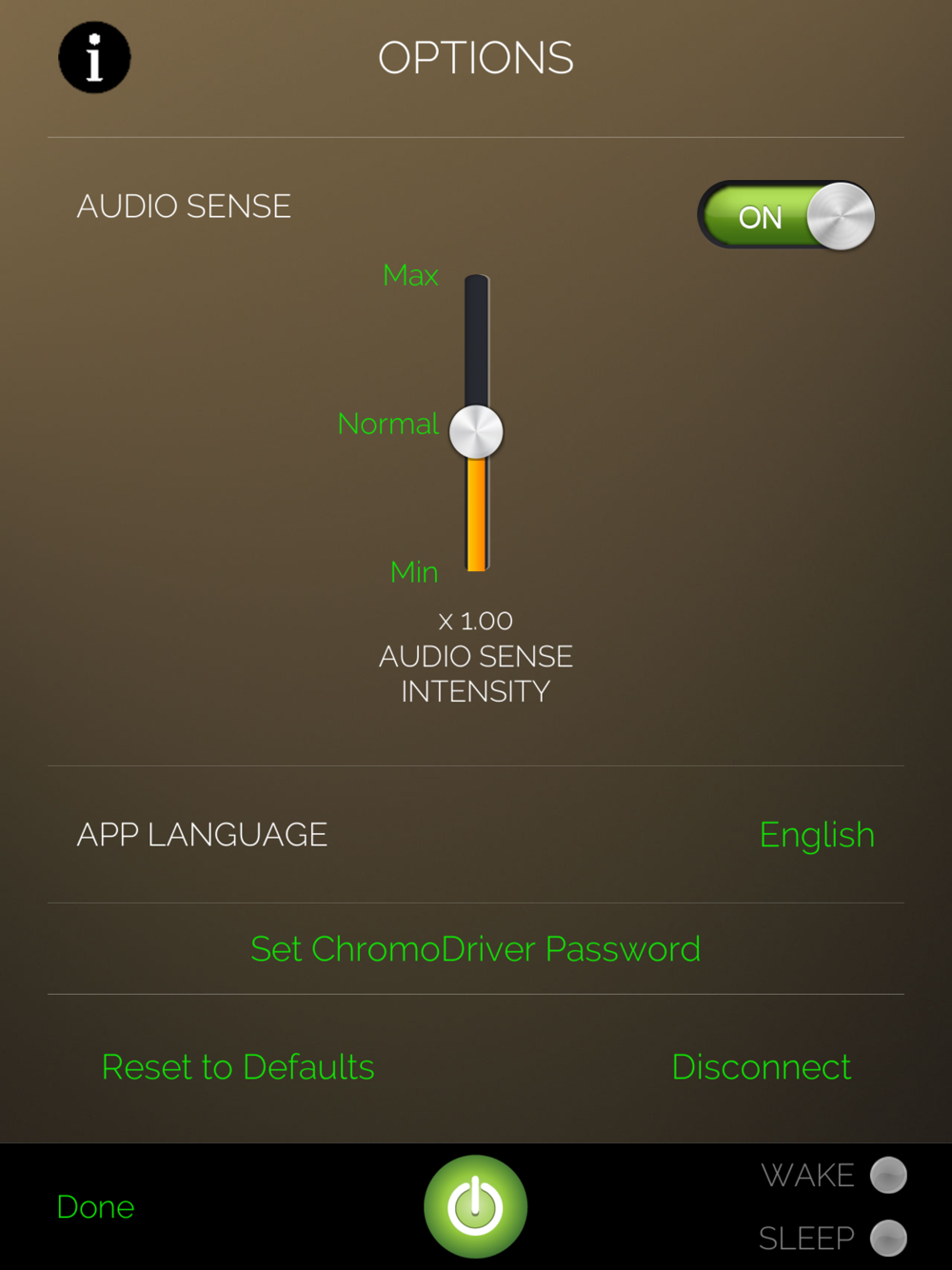 The App lets you set the colour mode of the ChromoDriver. It also unlocks additional functions: