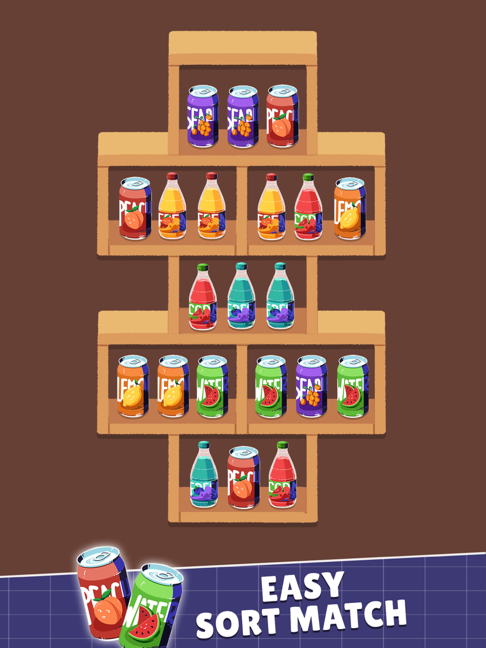 Goods Match: Simply find and collect three matching items from a wide range, including fresh crops and household essentials. Organize shelves efficiently, clear them, and complete your tasks within the time limit for a satisfying gameplay experience.