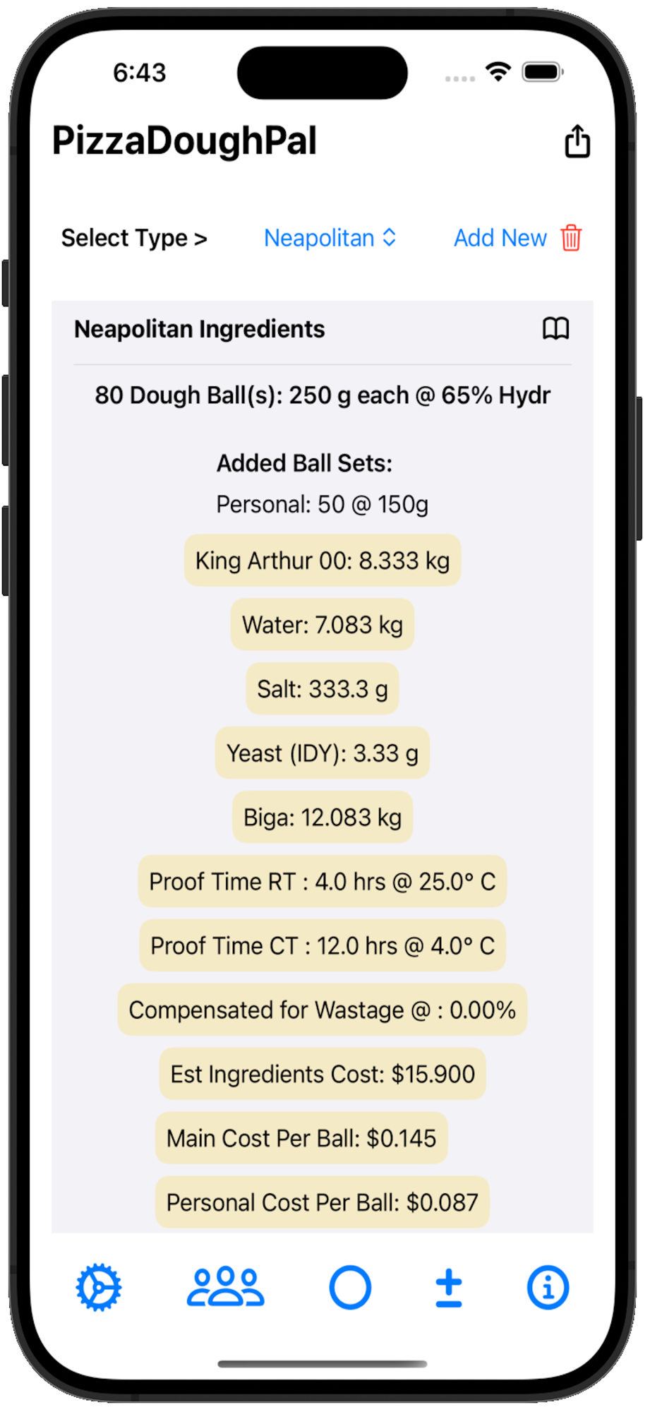 With over a dozen pre-loaded pizza styles from Neapolitan to Detroit , you can customize the recipe to suit your tastes. Simply adjust the number of pizzas you want, and let the app provide a precise ingredient list in grams. Tailor the ingredients to your preference, then easily print or share the results directly from the app.