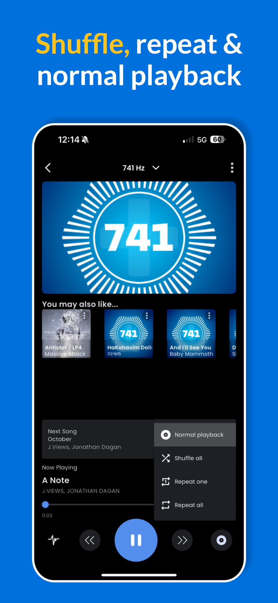 + Automatic Retuning: Your entire music library is seamlessly and instantly retuned to 741 Hz. Just press play!