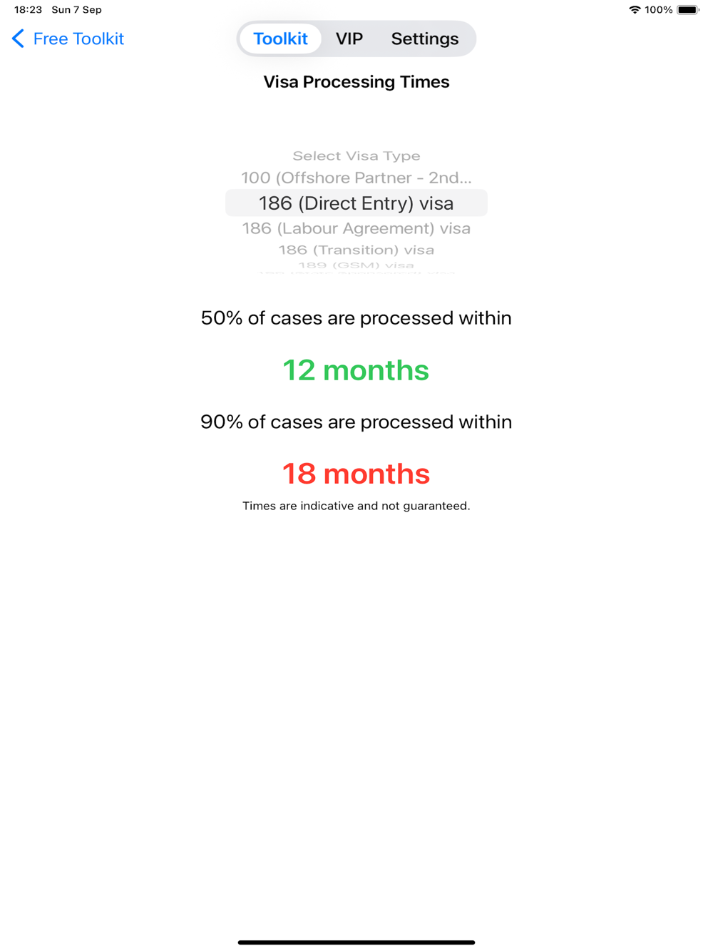 The app also supplies a basic points test calculator for General Skills Migration and a table for current processing times for these visa classes. Data is updated monthly or as it is released by various agencies.
