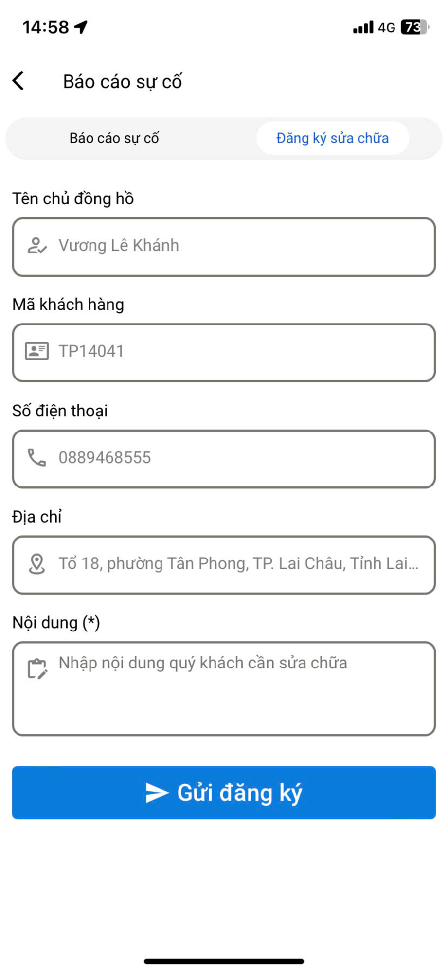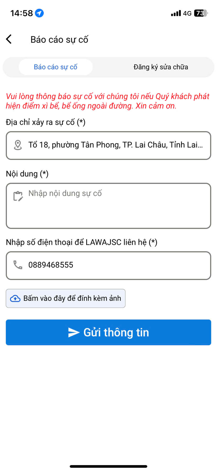 App chắm sóc khách hàng công ty cổ phần nước sạch Lai Châu, thông báo tiền nước hàng tháng