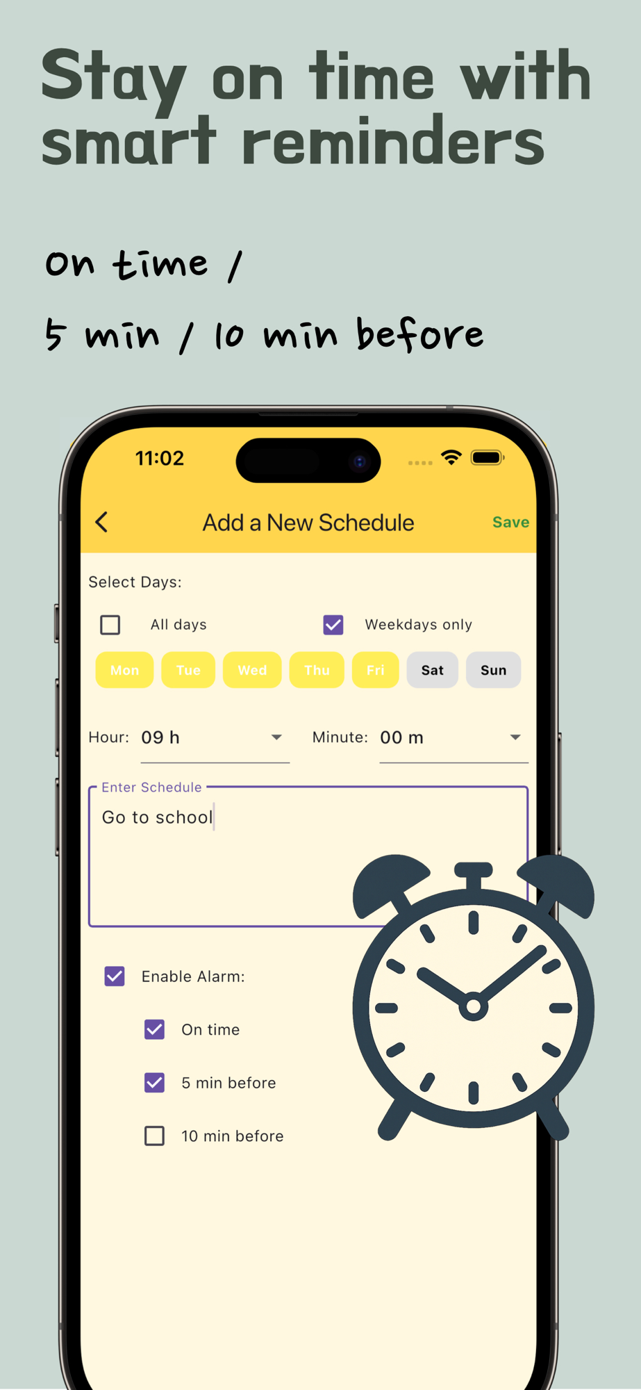 ● Easy schedule creation and alerts