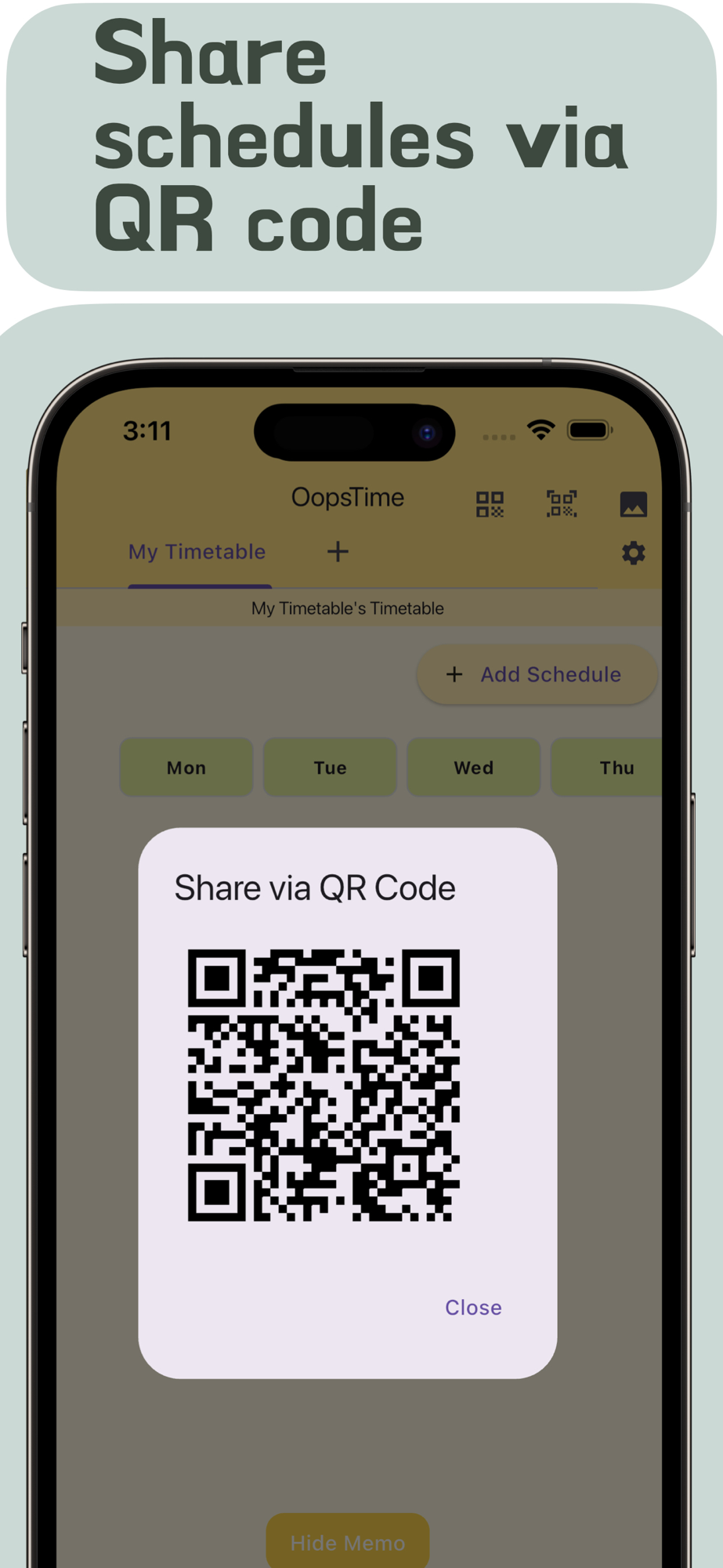 Quickly share timetables with family or classmates using QR.