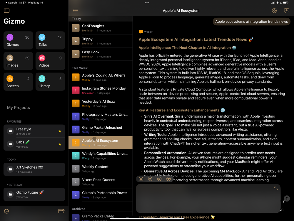 Gizmo Evo isn't just another AI assistant. It's a revolutionary platform that transforms how you create, work, and interact with your Apple devices.