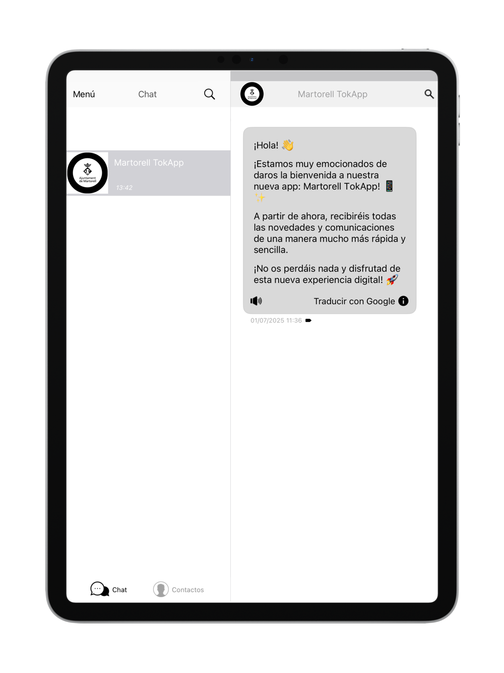 Bienvenidos a la app del Martorell TokApp, una herramienta pensada para acercar los servicios municipales a la ciudadanía y facilitar la comunicación directa con el Patronato Municipal deServicios de Atención a las Personas.