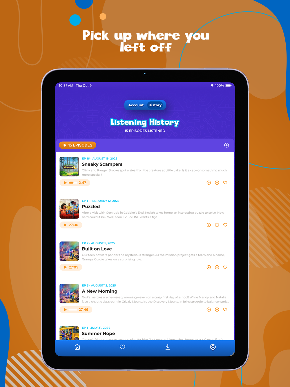 * Seamless Experience: Pick up right where you left off with our episode-saving feature, perfect for on-the-go listening.