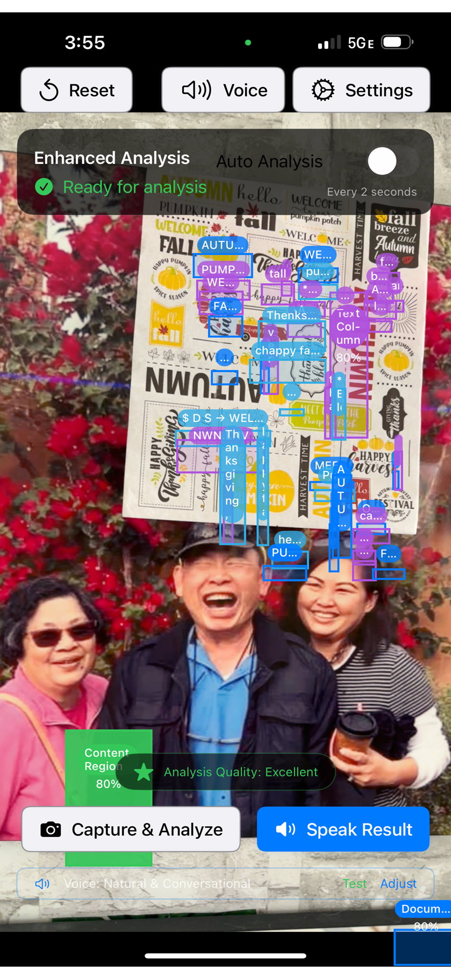 Voice feedback: Listen as the app clearly speaks detected items or text aloud.