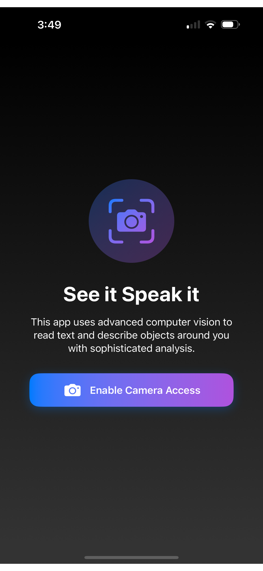 See it Speak it is a powerful sight-to-speech app built with accessibility at its core. Simply point your iPhone’s camera at objects, text, or surroundings, and the app will identify what it sees and read it aloud. With modern SwiftUI design, Liquid Glass styling, and Apple’s Human Interface Guidelines (HIG) compliance, See it Speak it is intuitive, fast, and reliable.