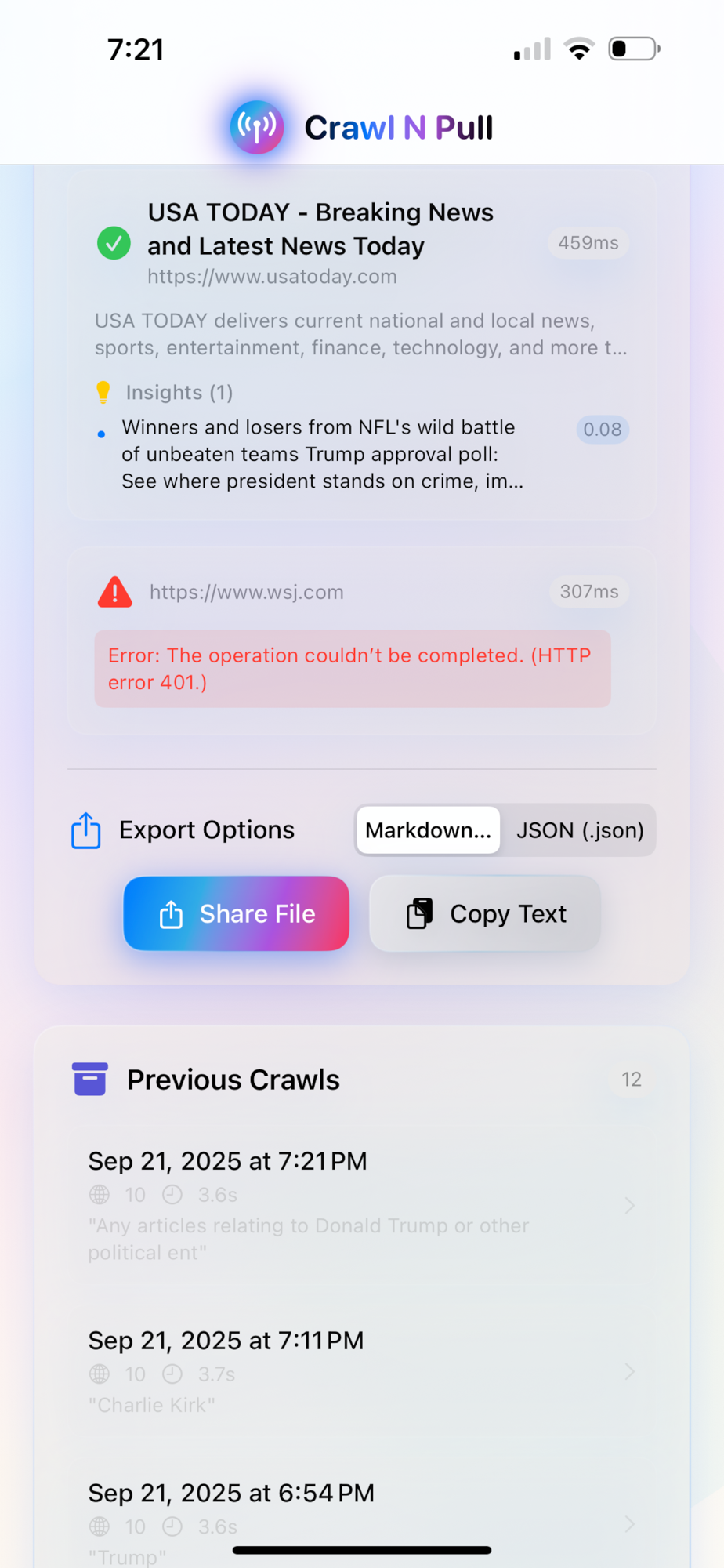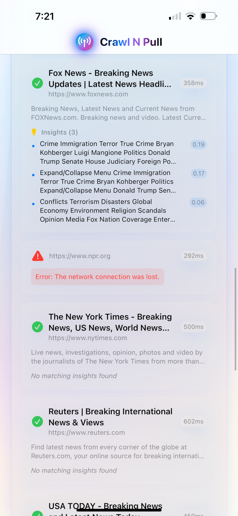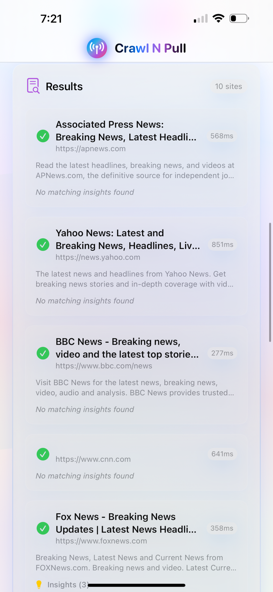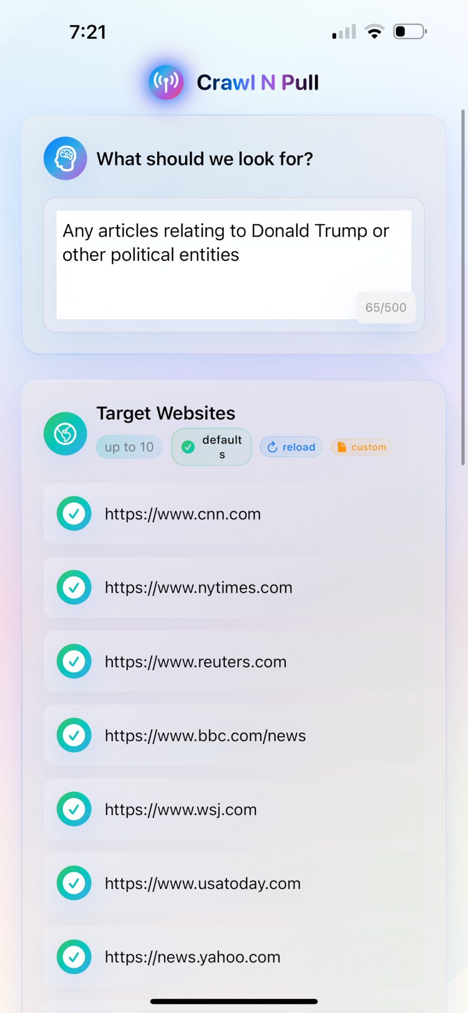 Perfect for researchers, journalists, students, competitive analysts, and curious minds — crawl n pull turns multiple sites into a clear, topic-focused summary.
