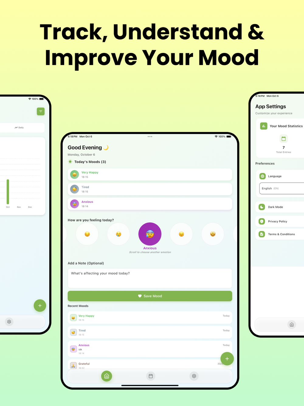 Visual Trends: See your mood patterns in clean, simple charts.