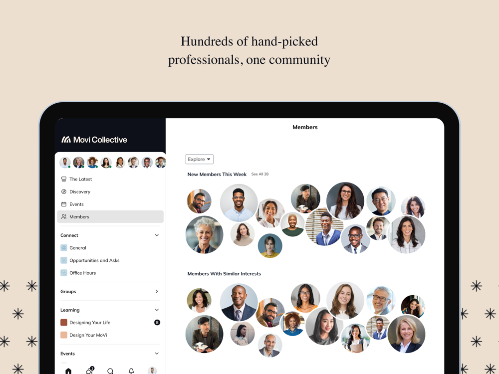 The Movi Collective is a private and selective community where ambitious people come together to grow personally and professionally. We bring together founders, executives, operators, and advisors across industries and generations to share wisdom, build authentic relationships, and shape the future.