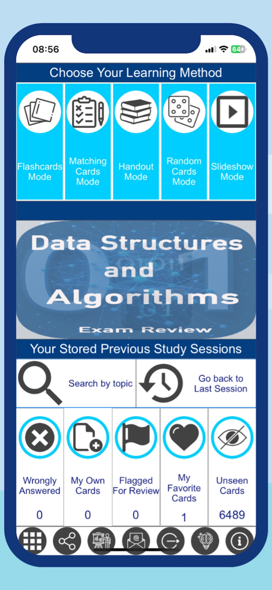 Comprehensive Content → Access carefully curated practice questions, flashcards, key terms, and detailed explanations on all major data structures and algorithms.