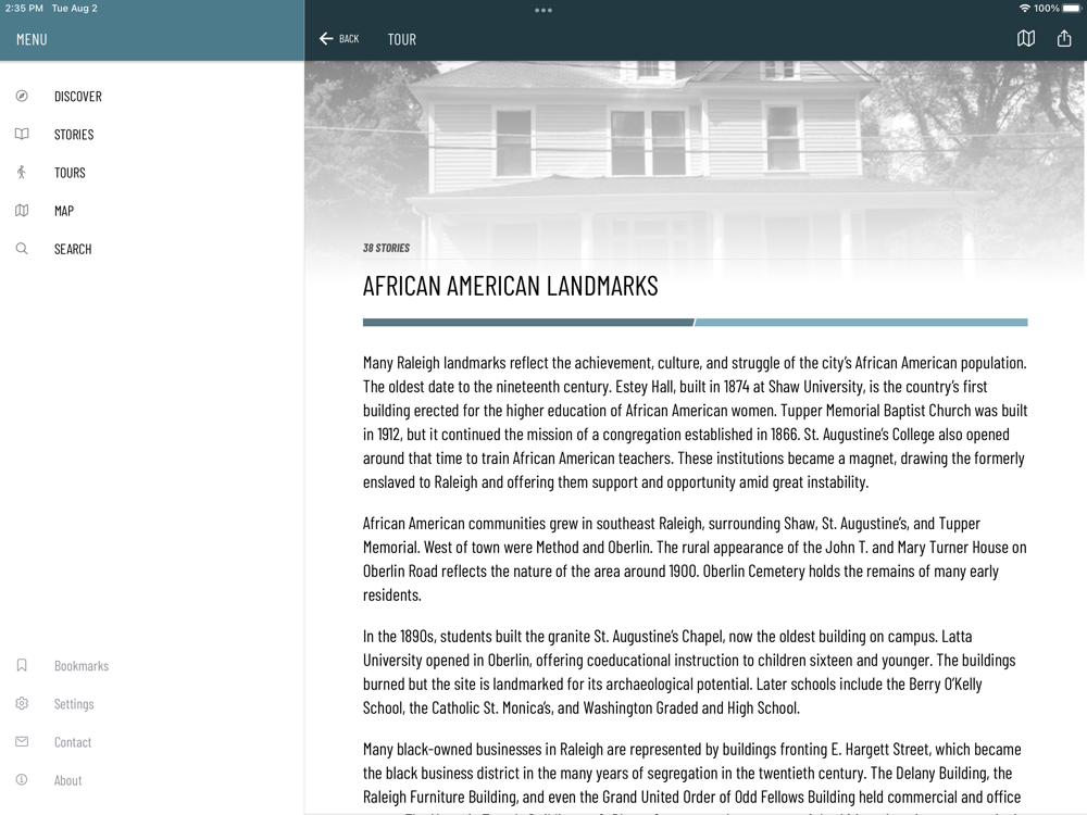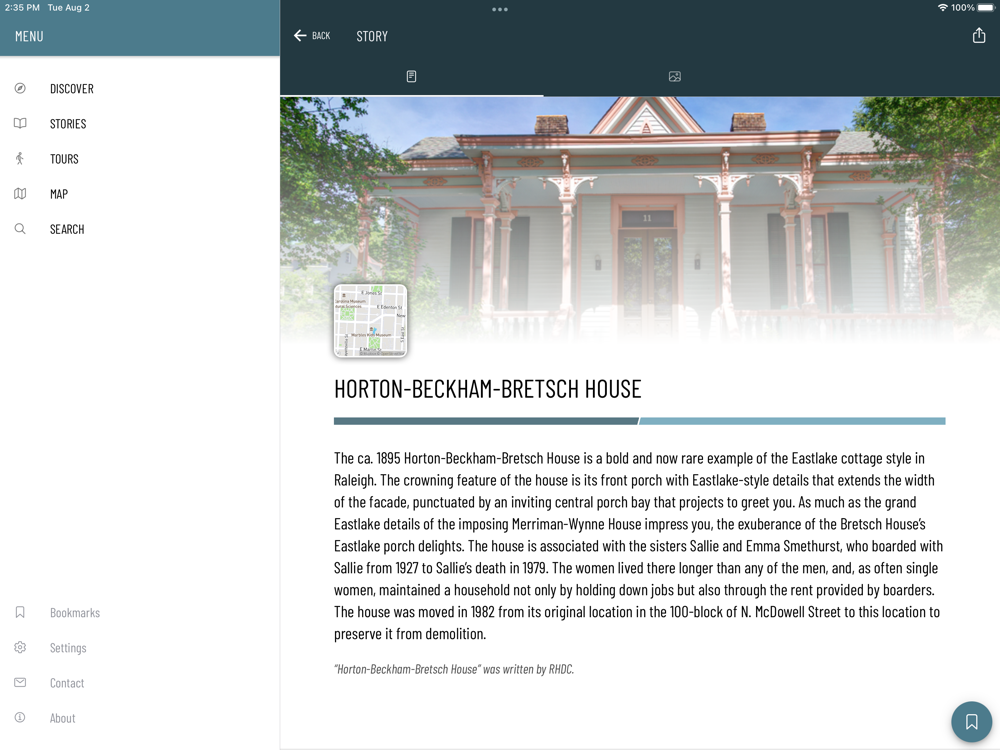 Brought to you by the Raleigh Historic Development Commission, Raleigh Historic is a free app that puts Raleigh’s historic resources at your fingertips. Explore unique historic places and take self-guided walking tours. Find interesting places and events in Raleigh’s history. With a growing list of interpretive stories, each point on the interactive GPS-enabled map includes historical information about the location, along with historic images from archival collections and historical publications. You can find more information about Raleigh’s history by visiting the project website at raleighhistoric.org.